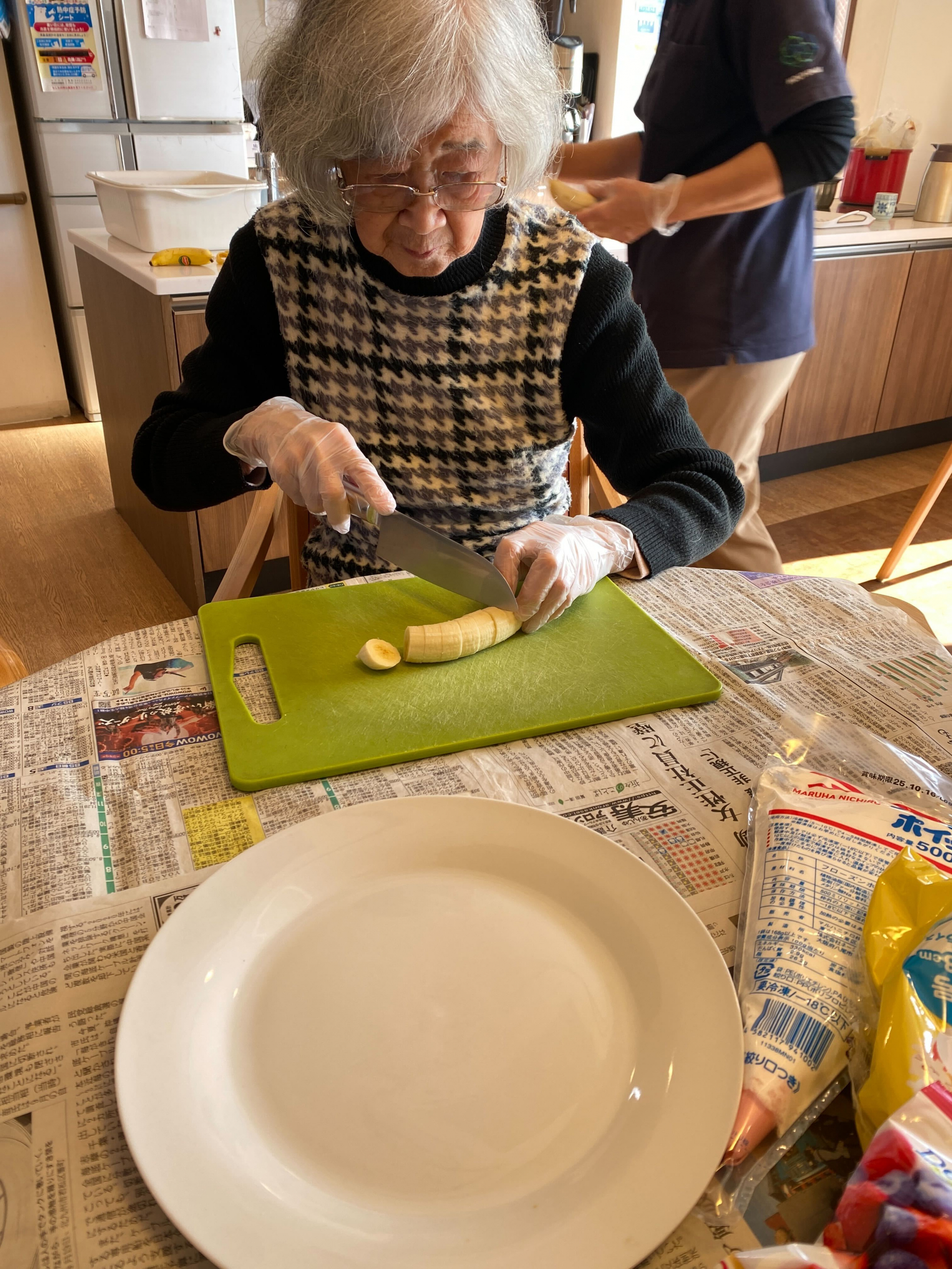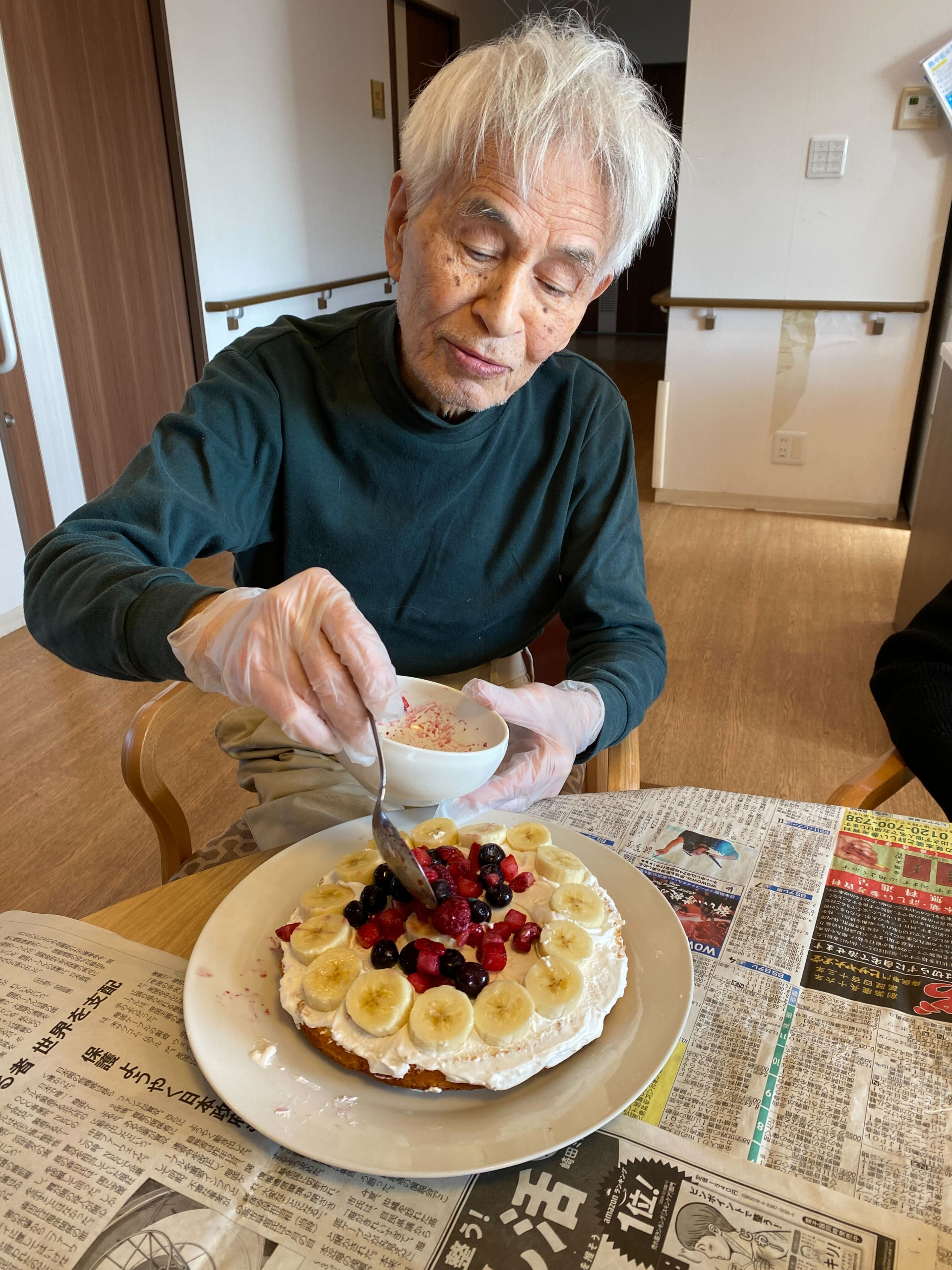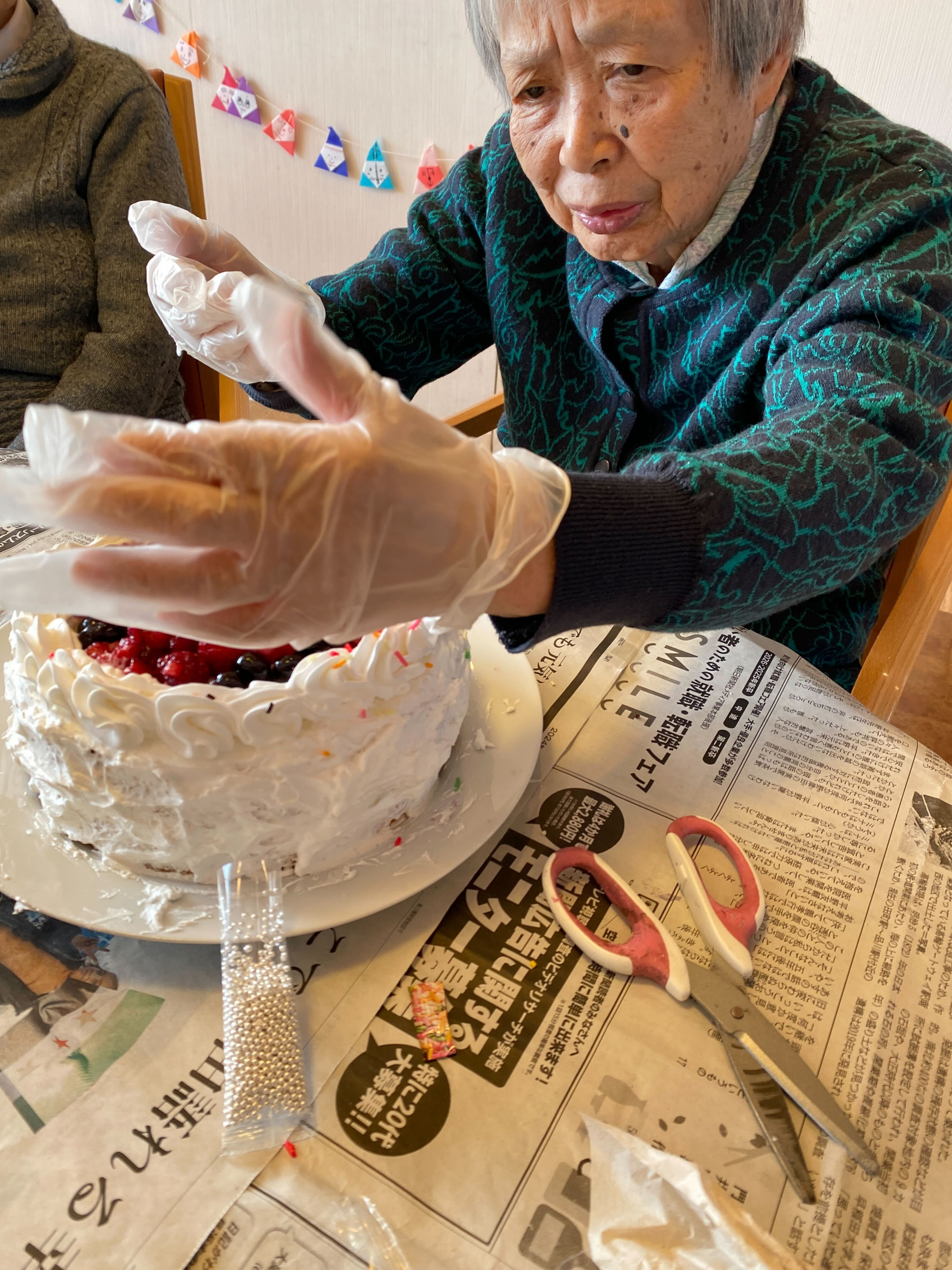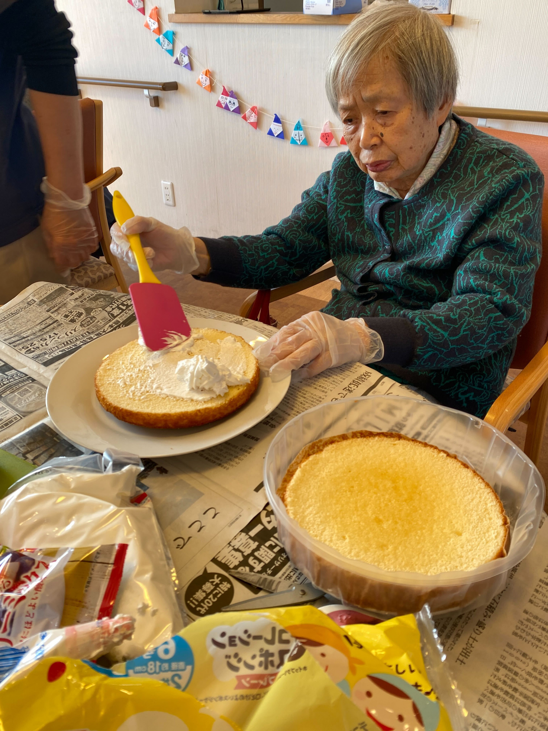 こんにちは!!今日はクリスマスの日ですが午前中に皆様と一緒にクリスマスケーキを作ってくれました。