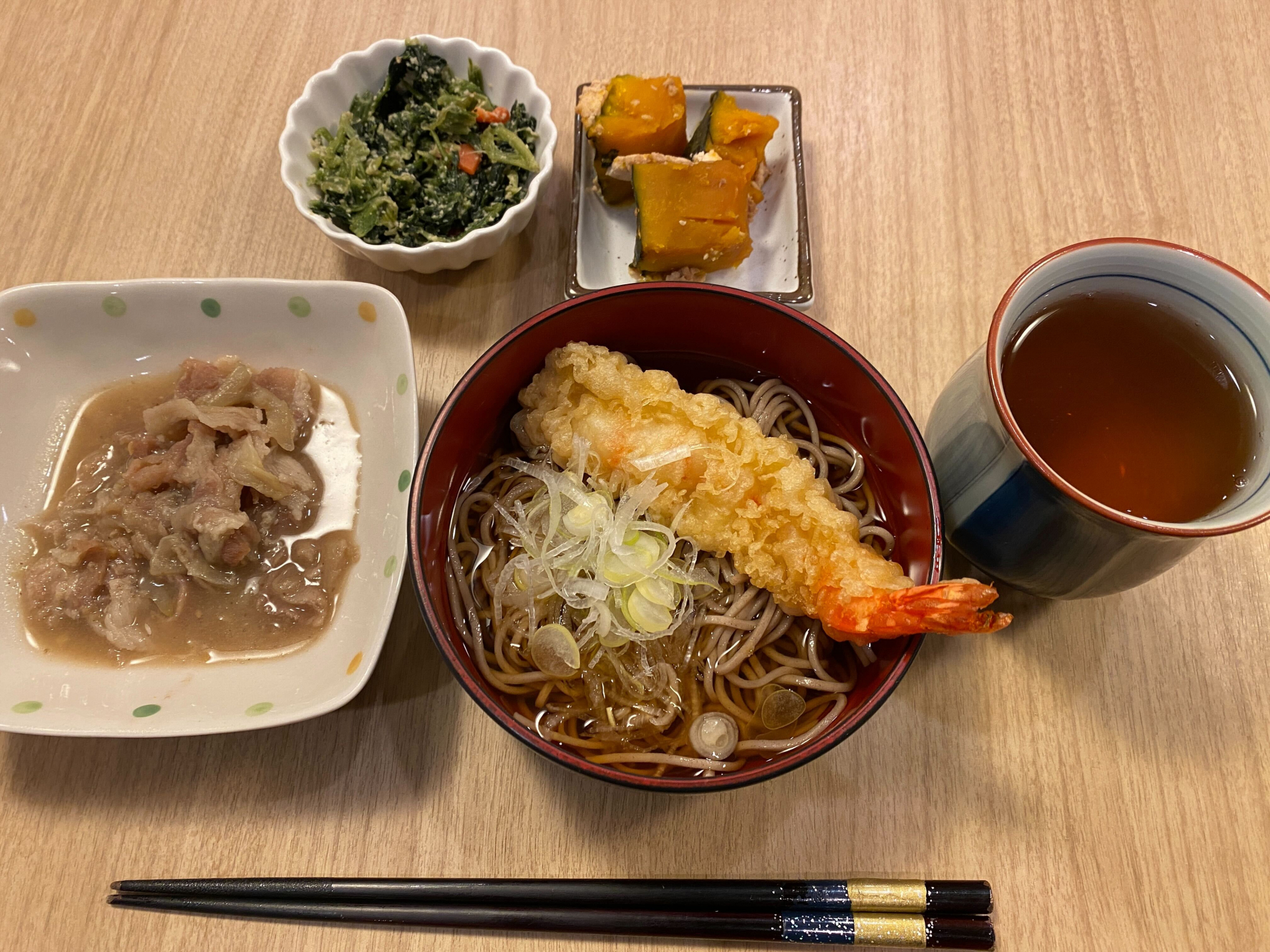 今日は大晦日ですので、夕食のメニューは年越しそばでした!