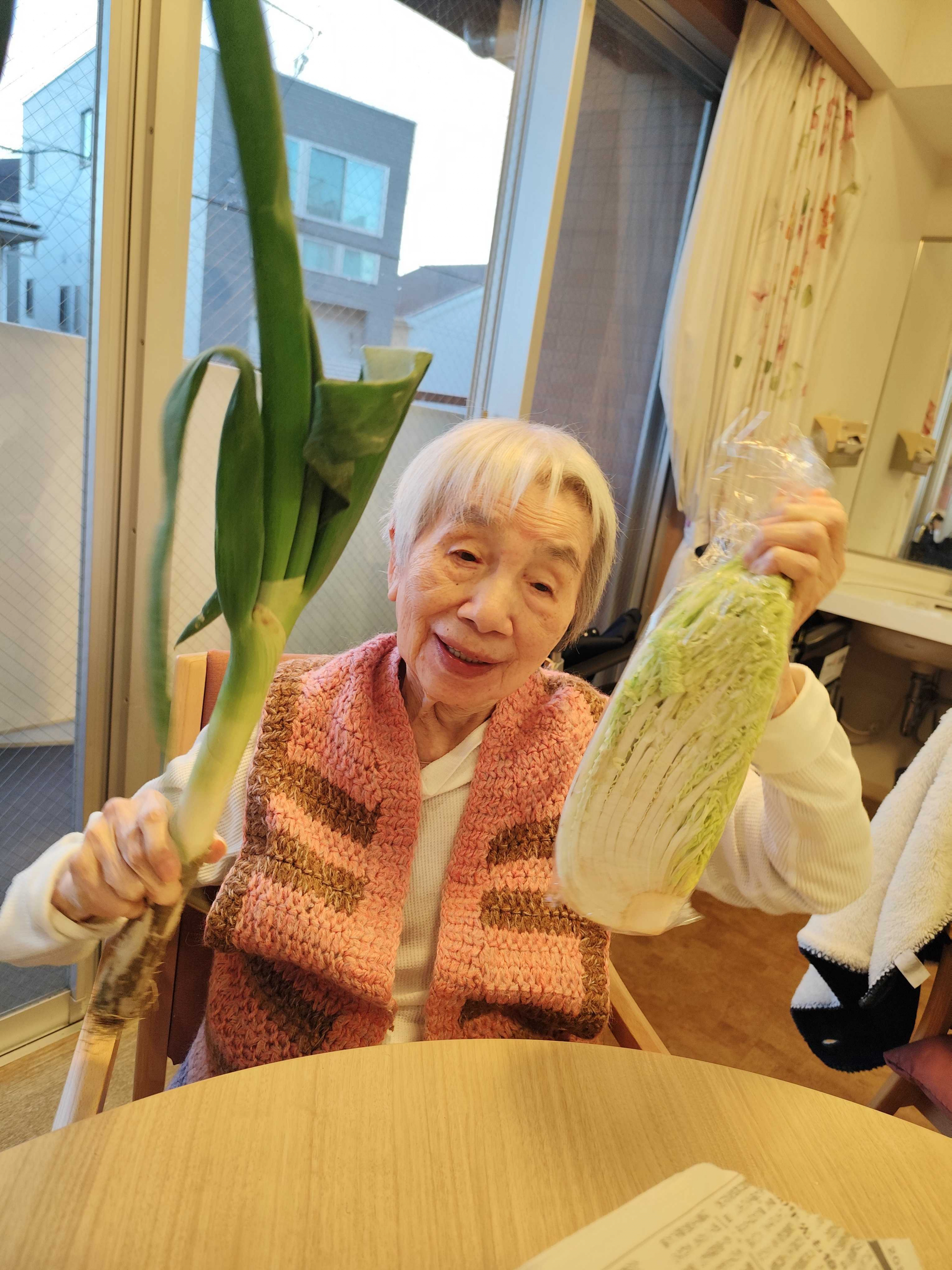 昨日のお夕食、お味噌汁の野菜を何にしようか皆さんで決めました♪