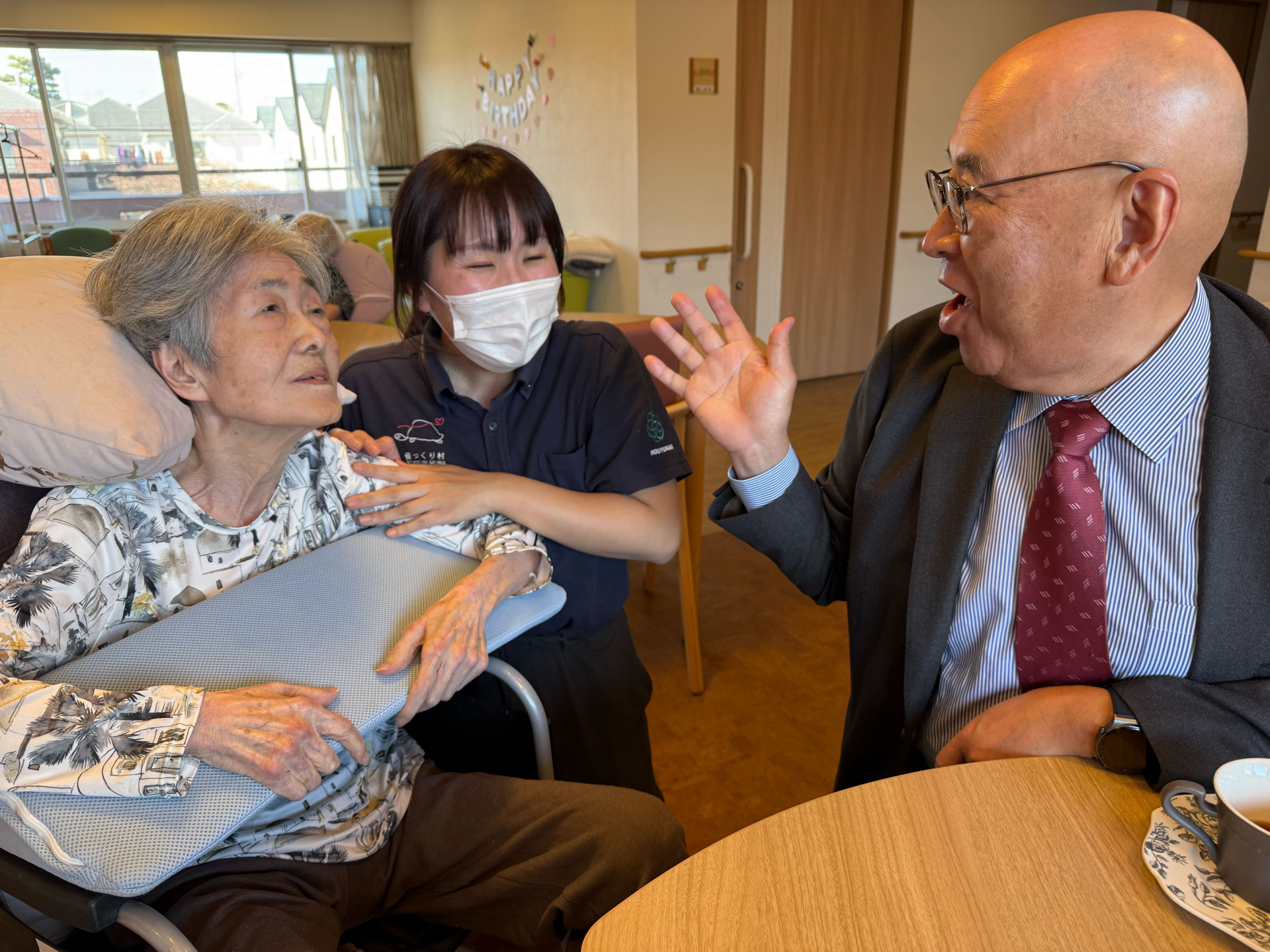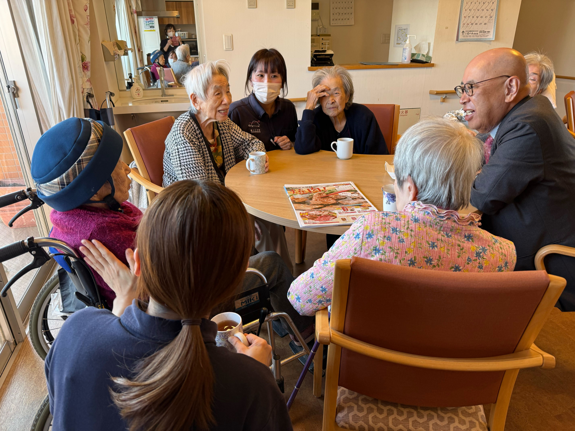 いつも先生がくると皆さん嬉しそうにお話ししています!「先生は元気ね~」「会えてうれしいわ」と笑顔絶えません(^^♪