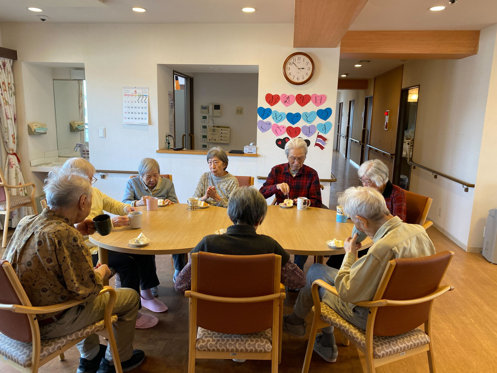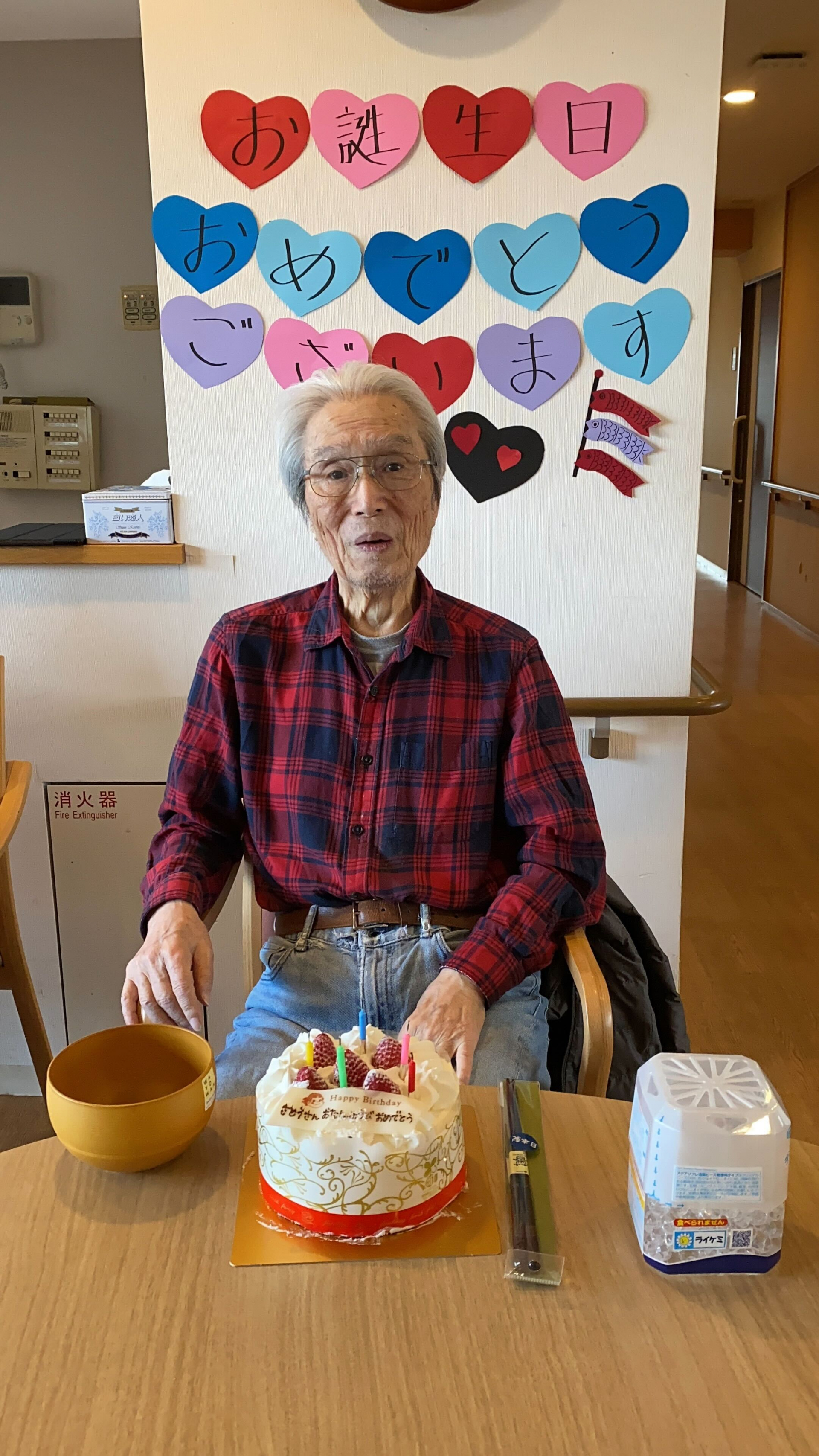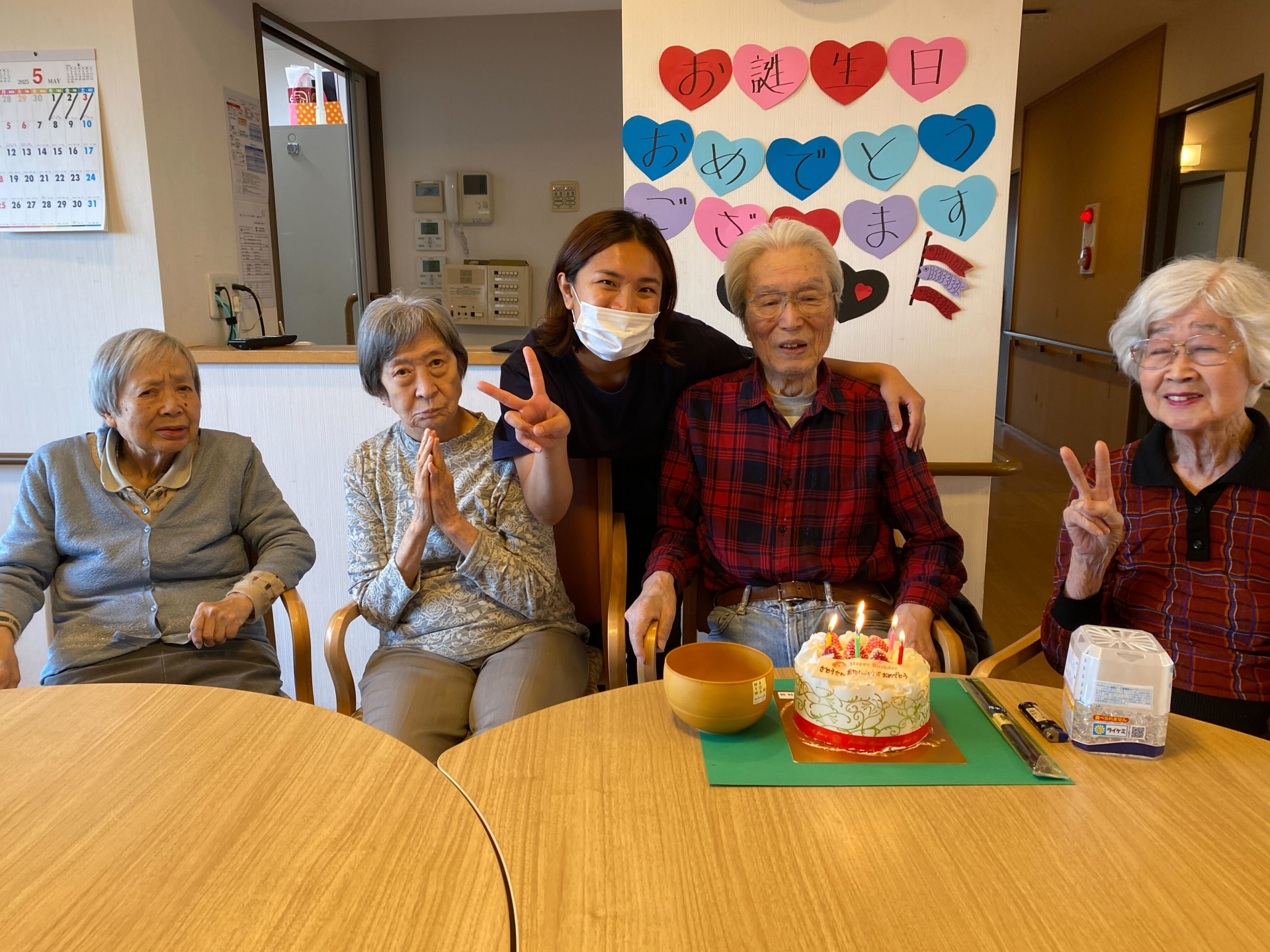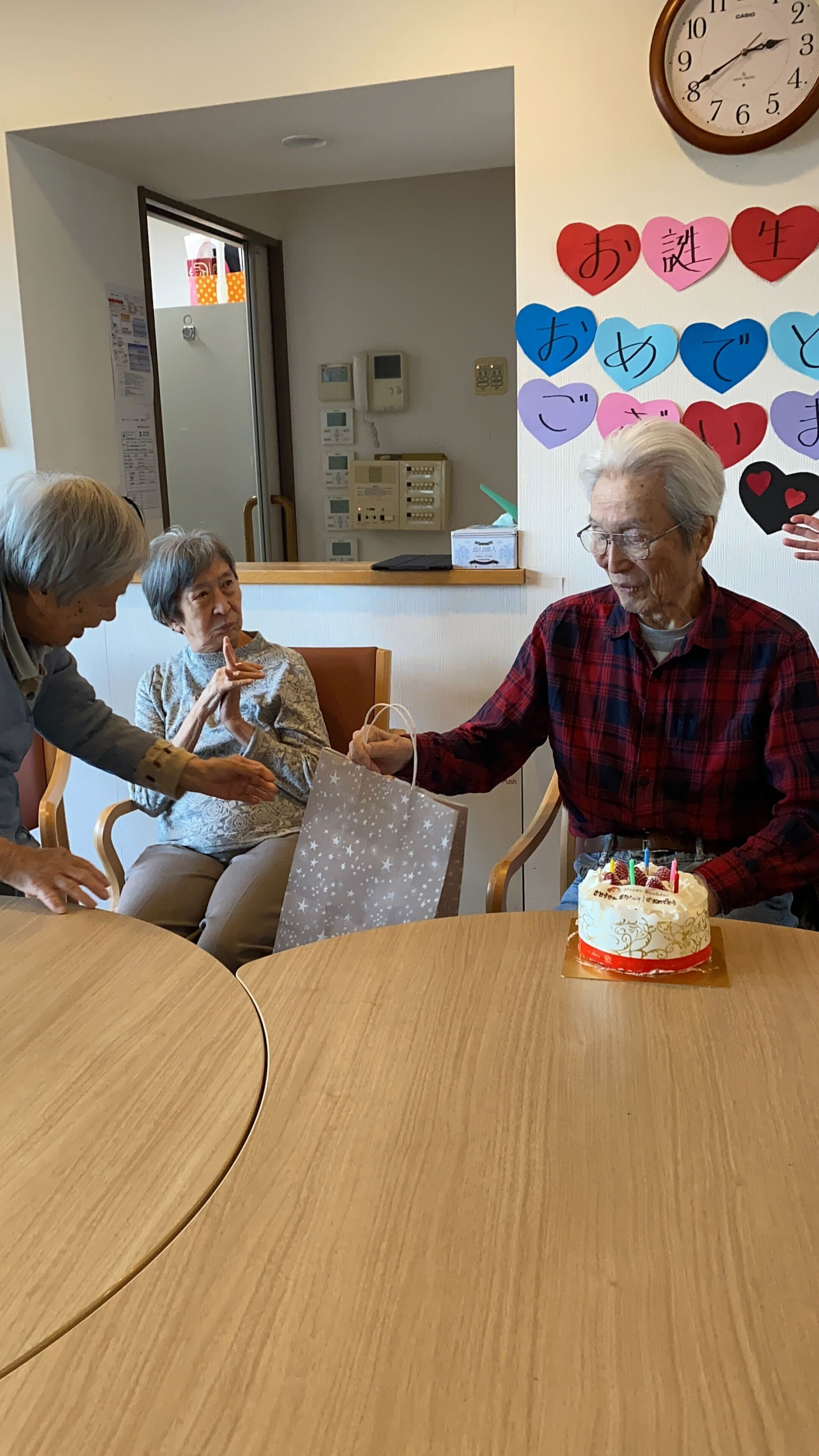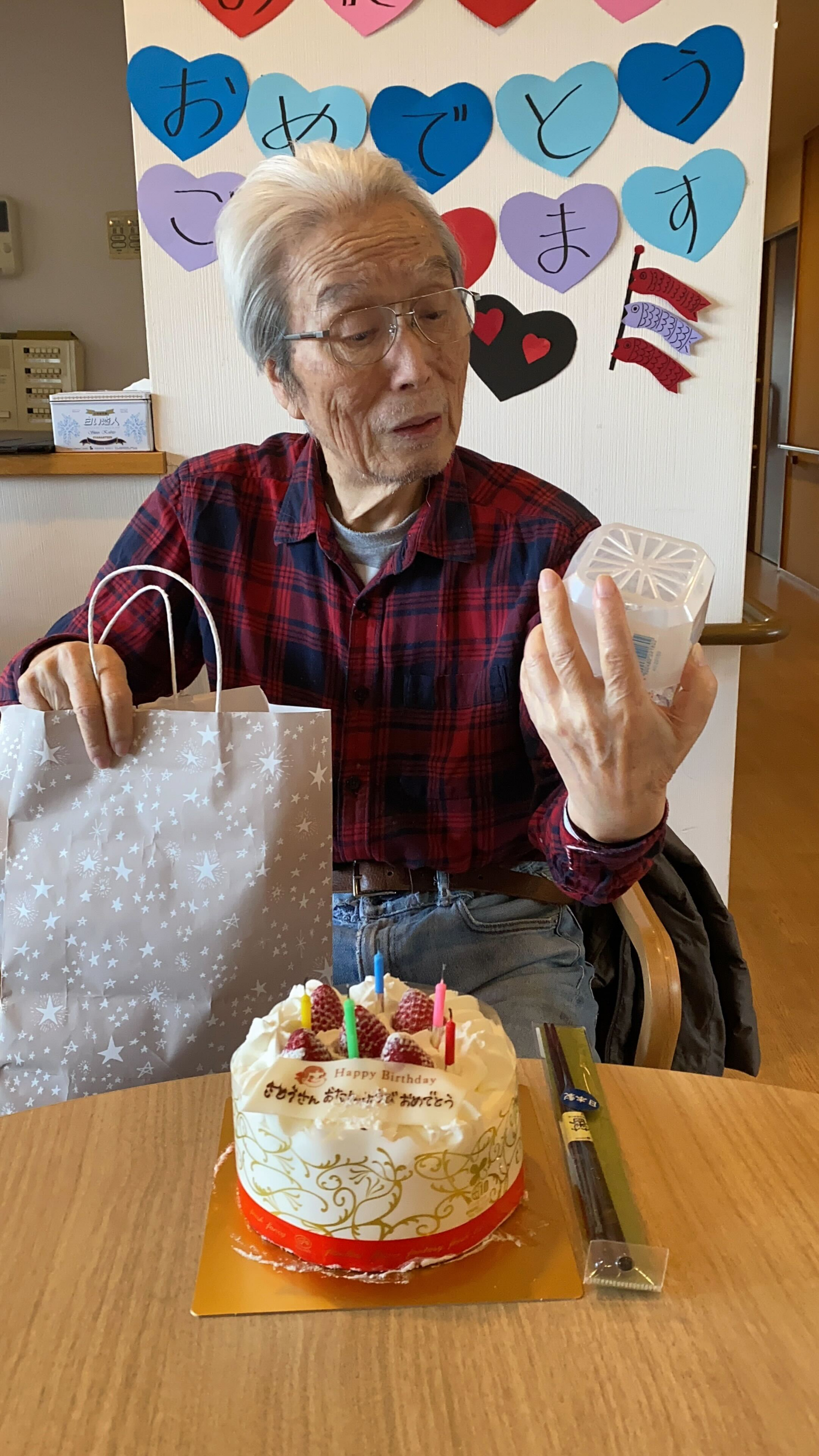 皆さんでお誕生日のケーキを美味しく頂きました。「おいしい~」「ありがとうね」とS様が仰ってました。