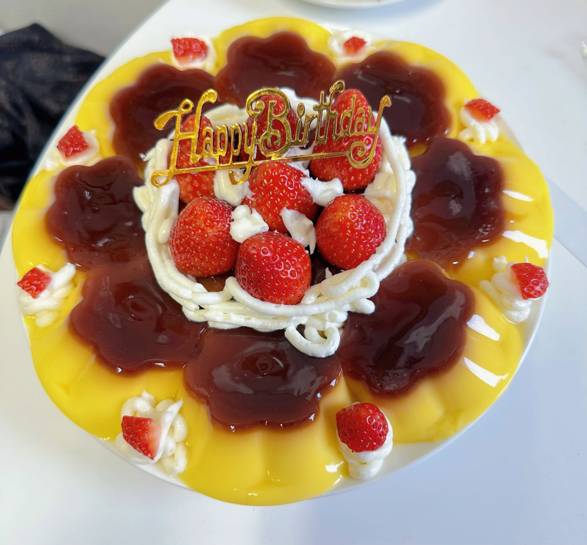 職員特製のプリンケーキでお祝いです(*´▽`*)