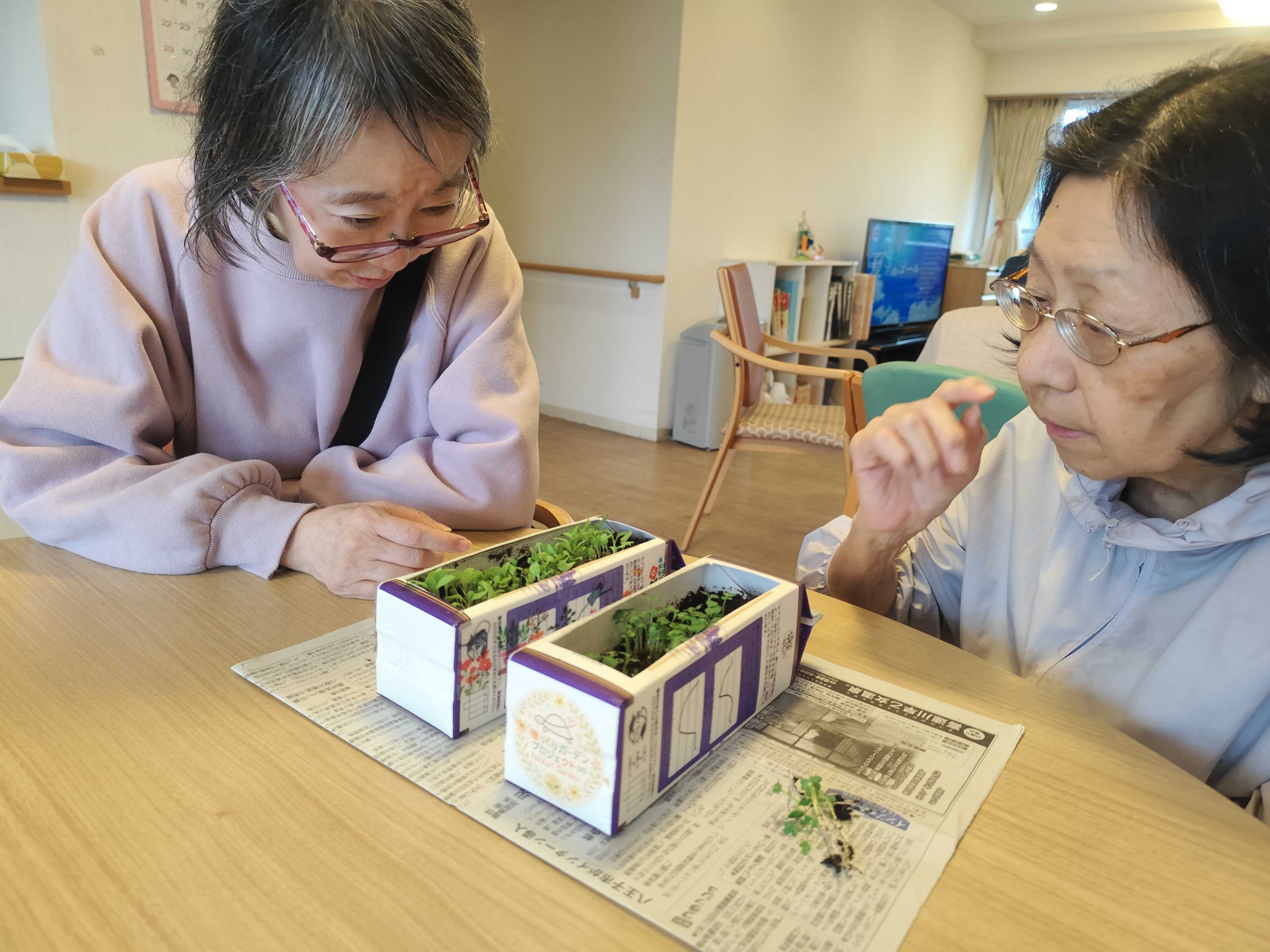先日お知らせしたガーデンプロジェクト、フロアでは牛乳パック栽培を始めました!