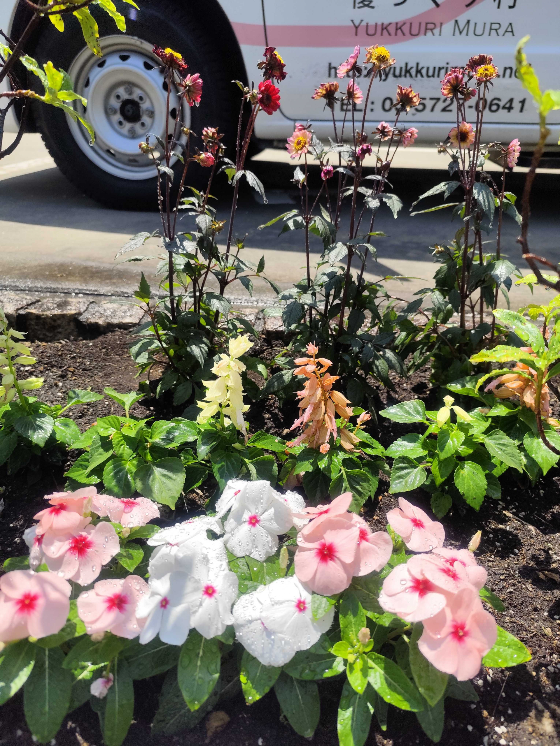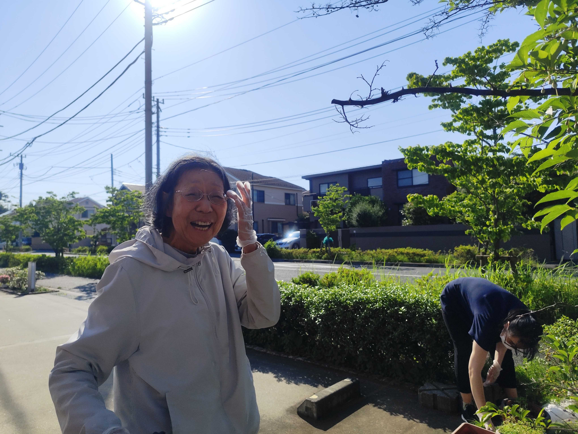 利用者様と水やり、草取り。