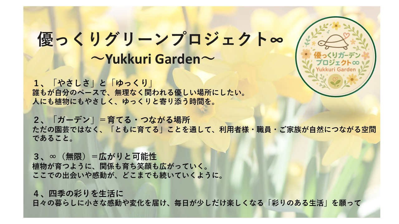 プロジェクト名は【優っくりグリーンプロジェクト∞】に決定いたしました。