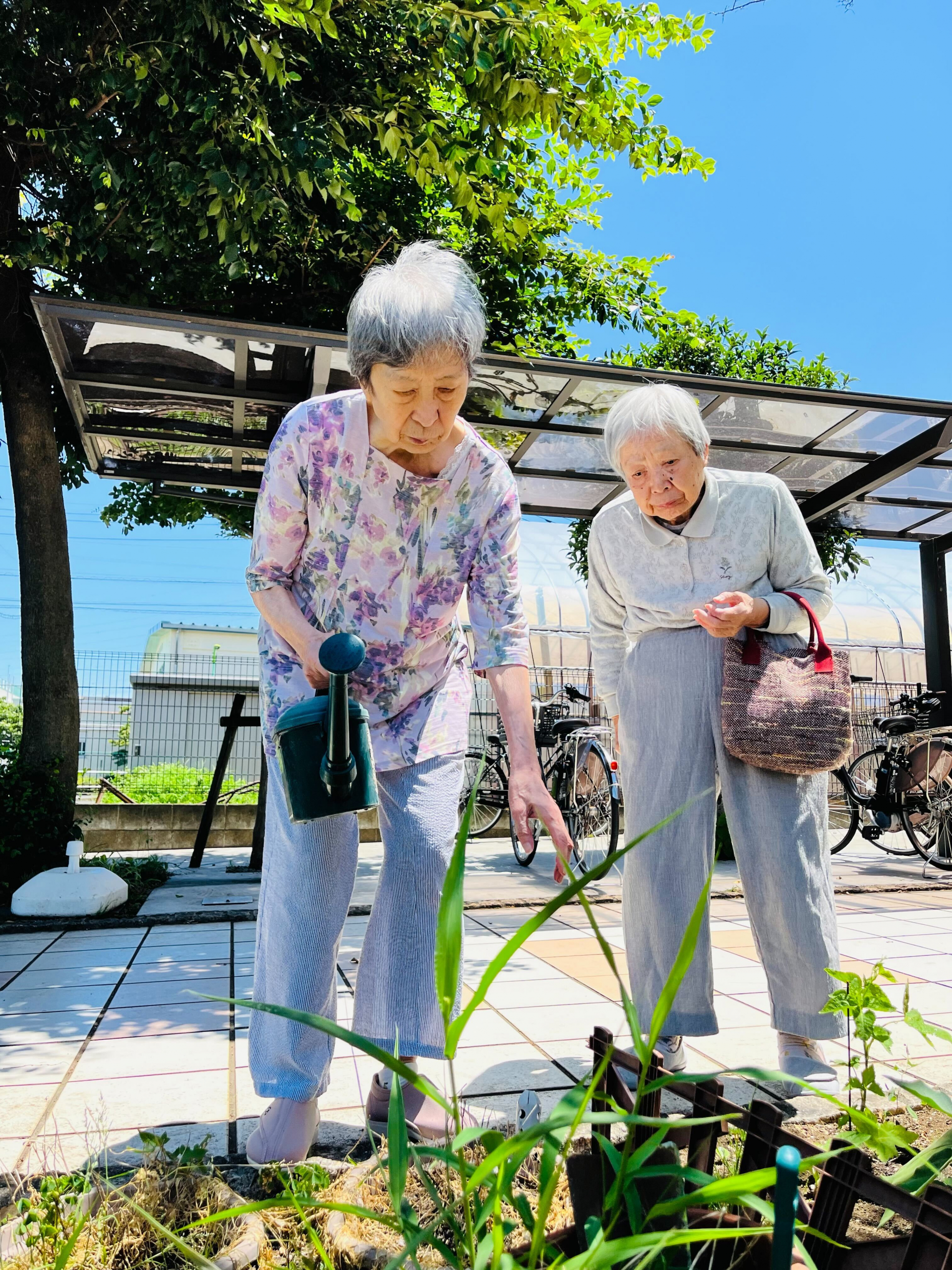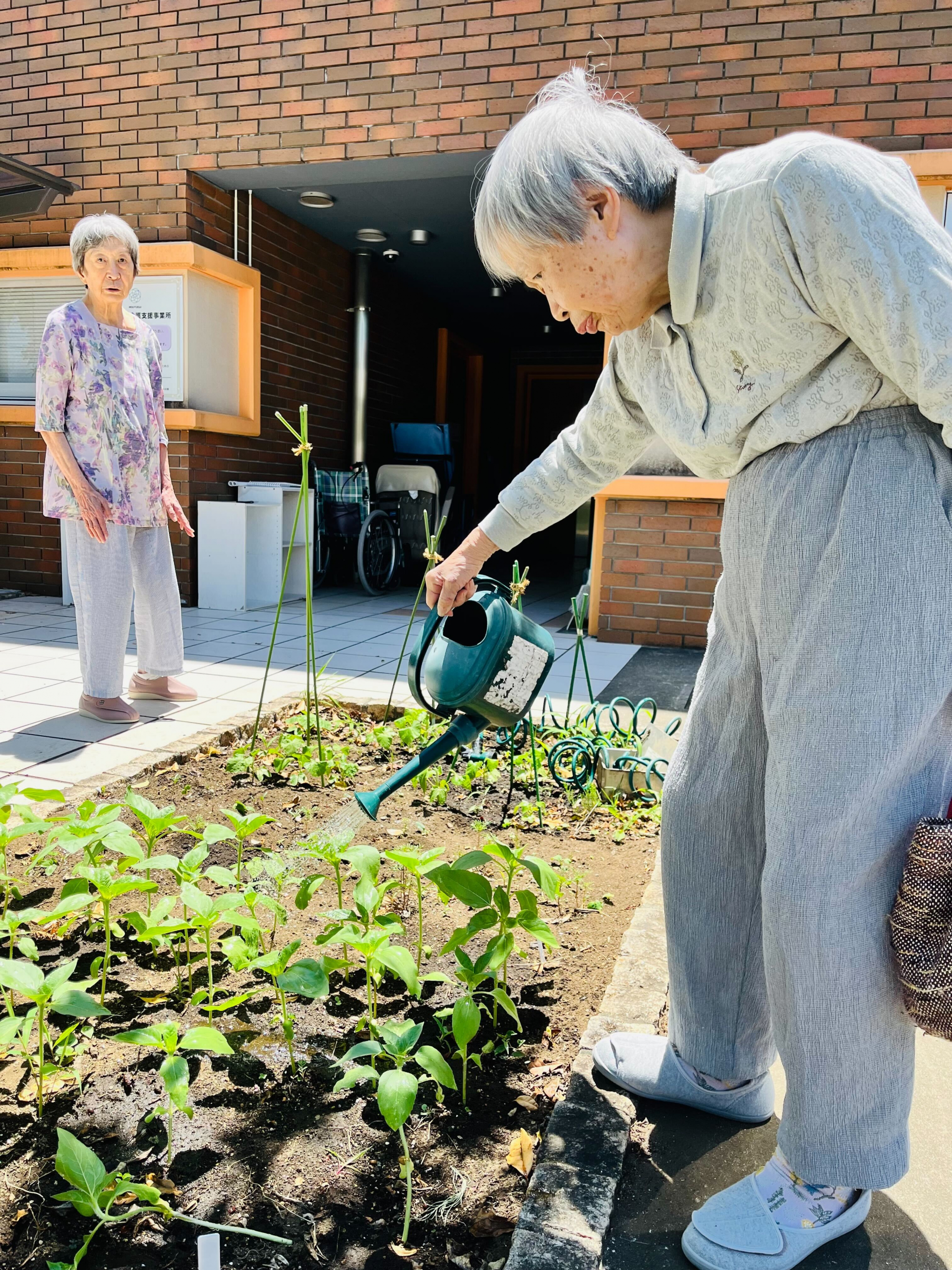 「暑いからだね」なんて話しながら丁寧に水やりをしてくれます。