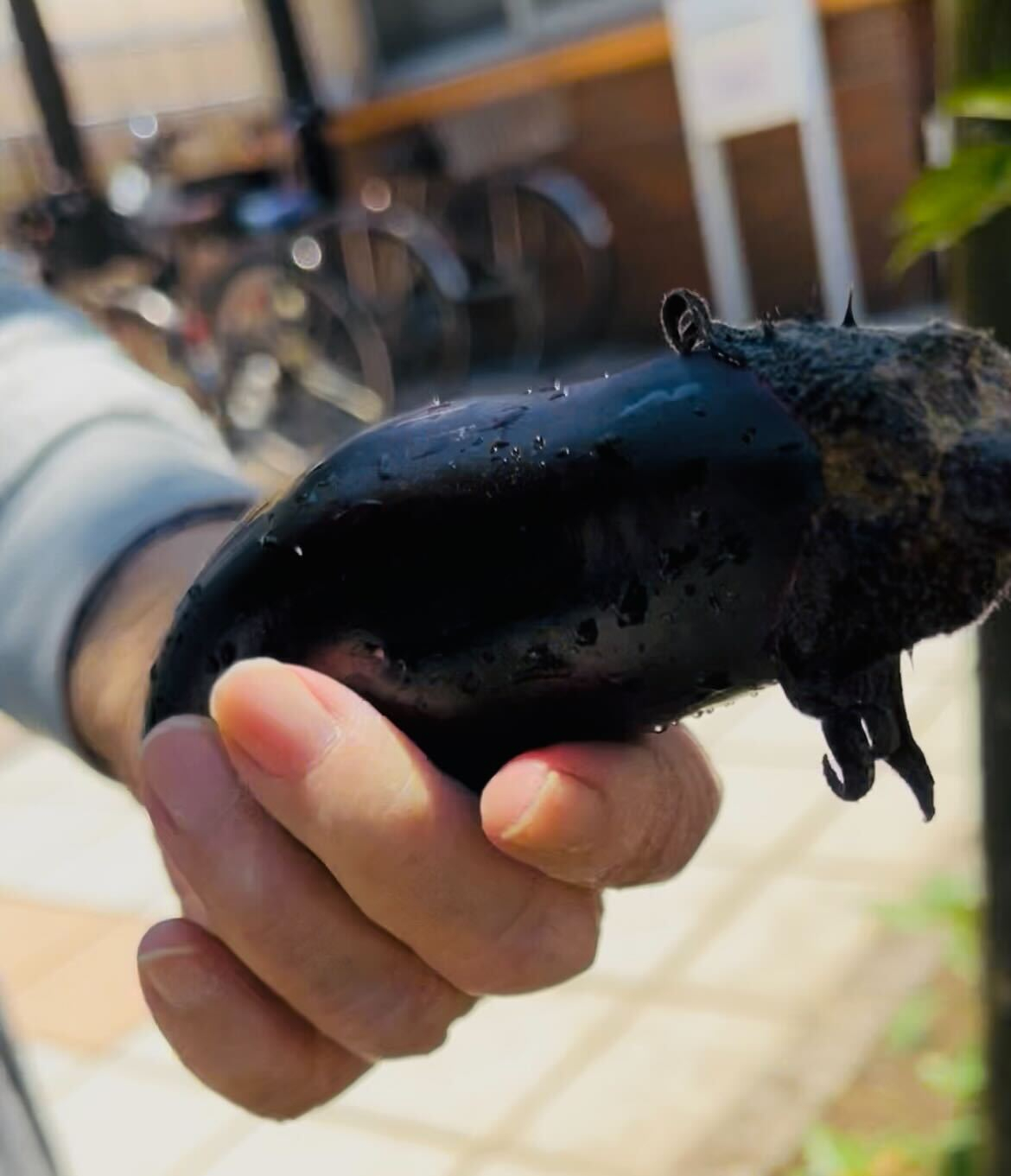 ちょうど食べ頃っぽいナスがあったので収穫してみました!