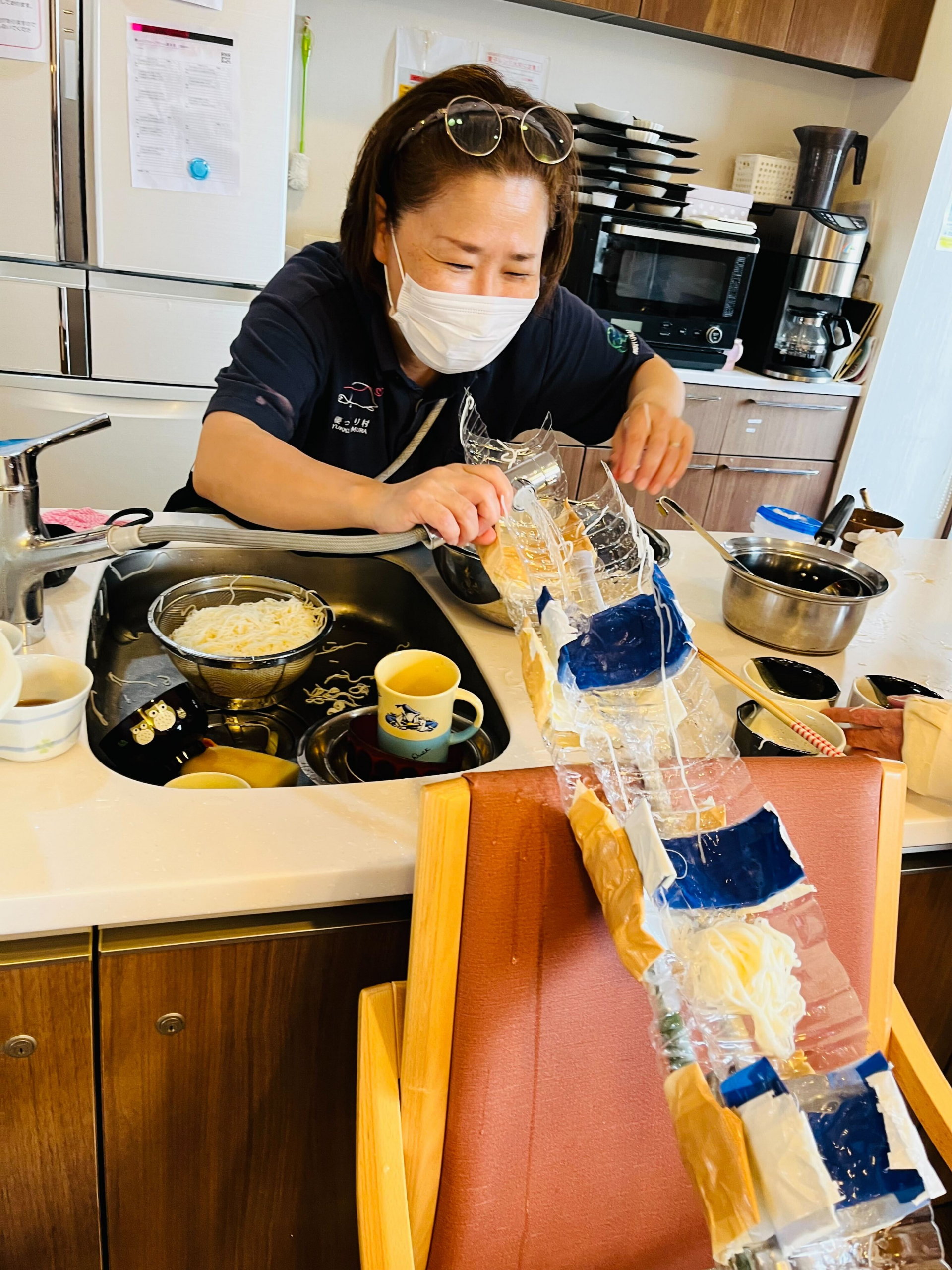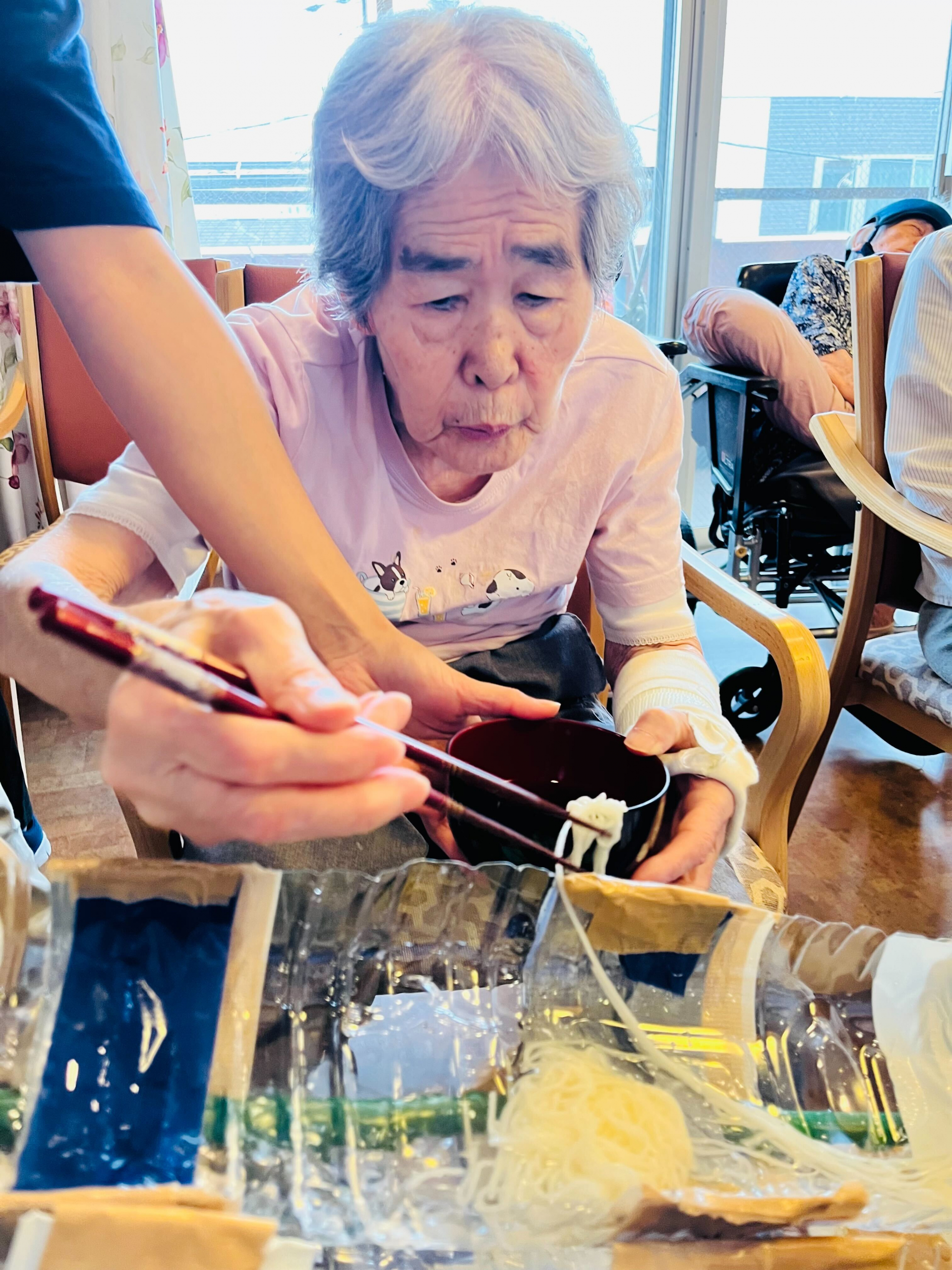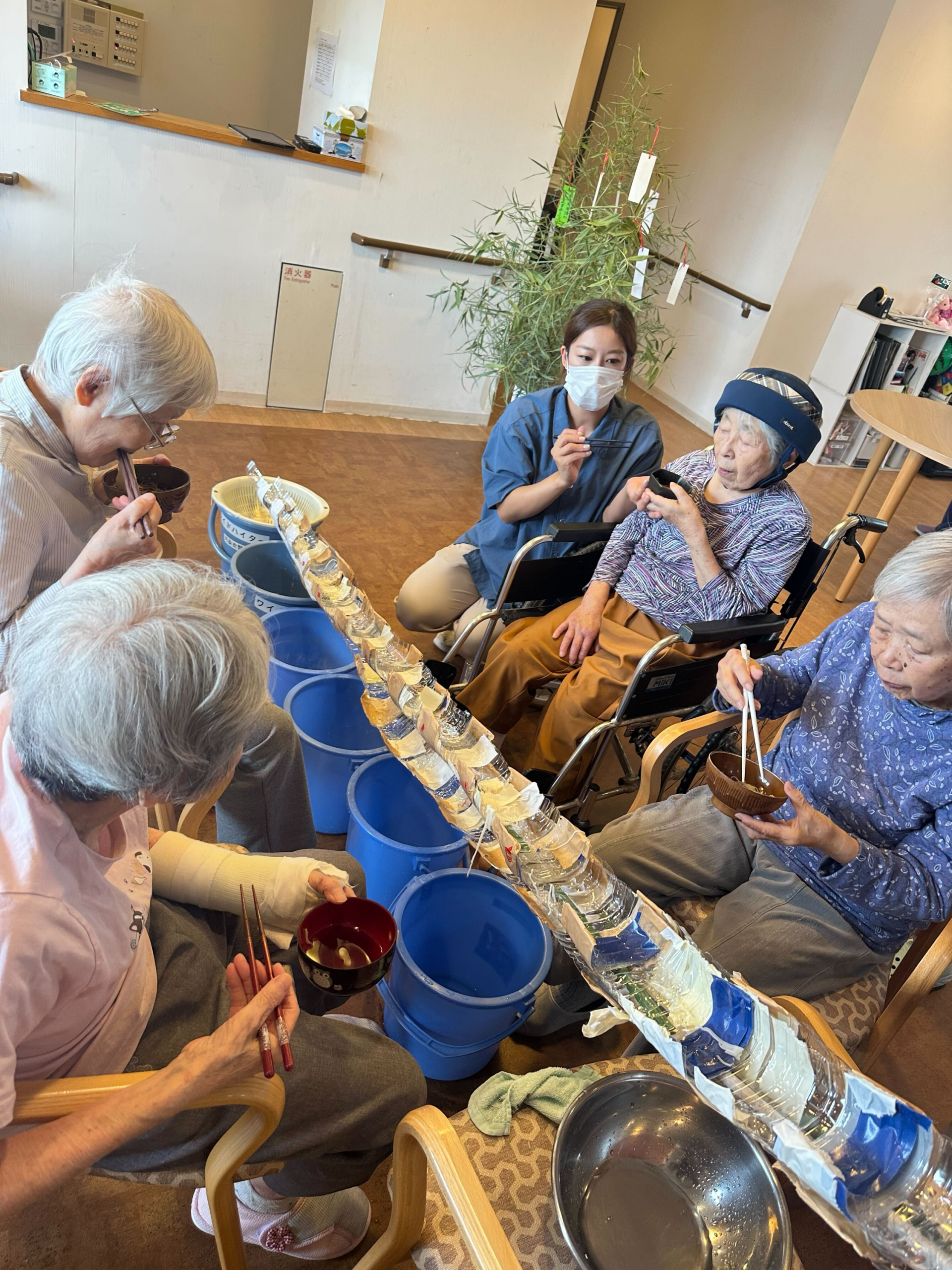 ”皆で夏を楽しもう!”とういうことで、七夕イベントで流しそうめんとスイカ割りをしました!