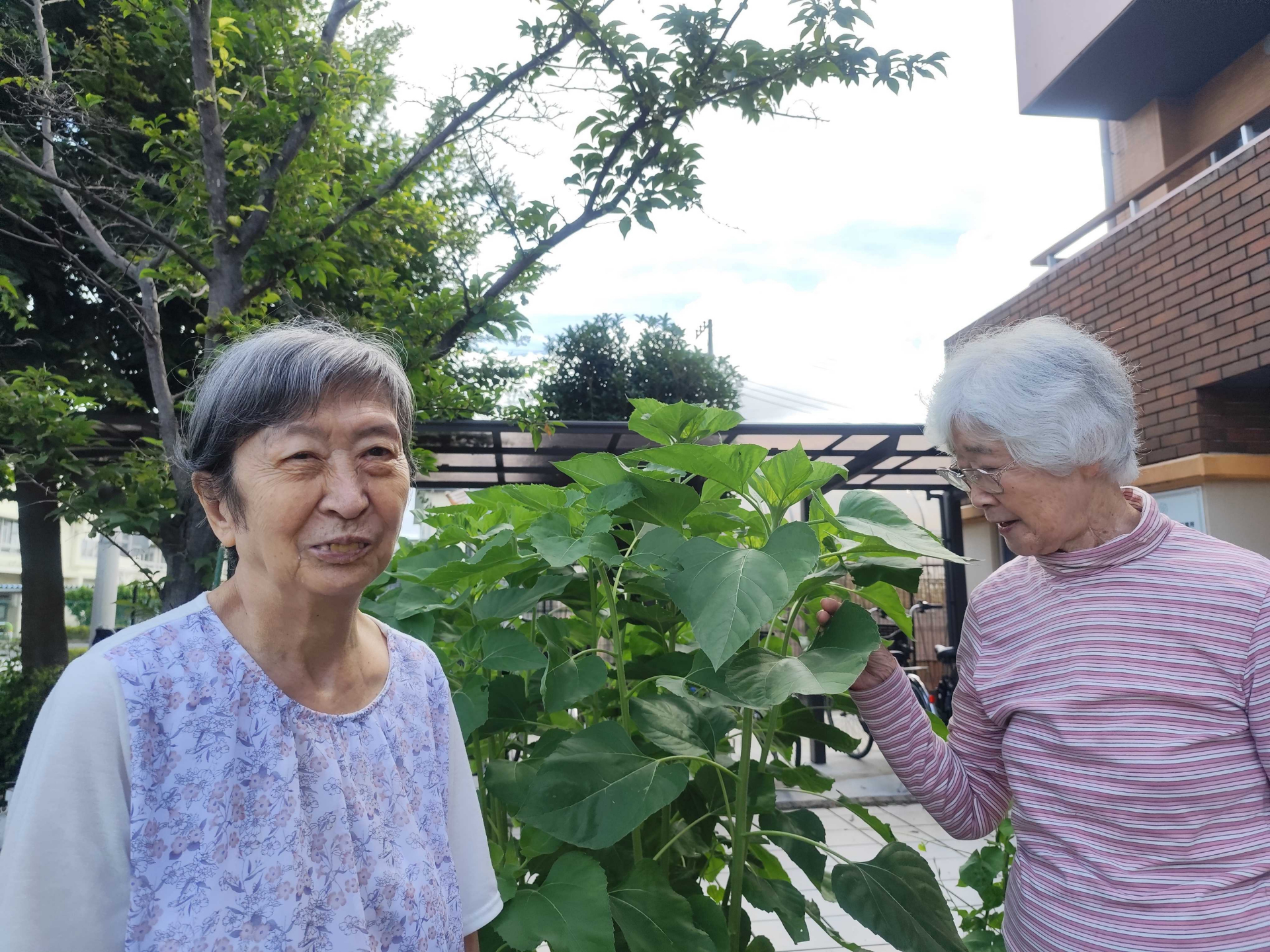 「えぇ、すごいね」「これひまわり咲くの?楽しみね~」