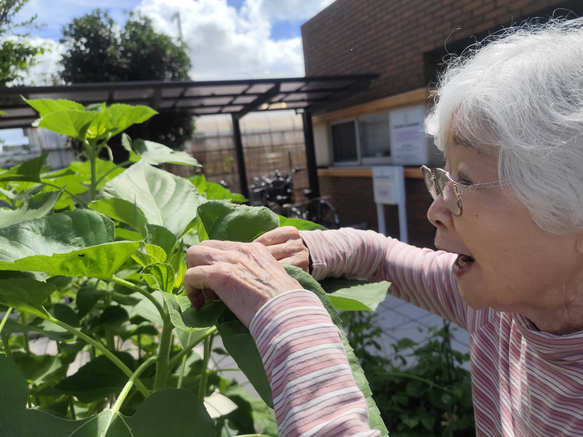 優っくりガーデンで育てているひまわりの成長に皆さんびっくりされていました!