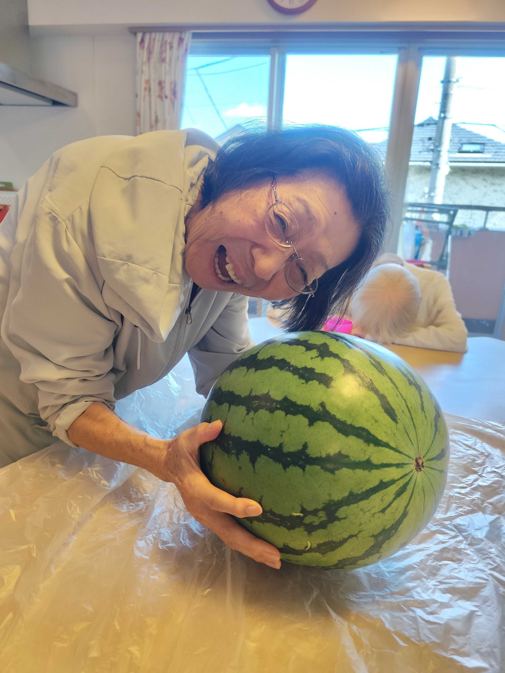 【グループホーム 夏のイベント】立派なスイカをいただきました(*´▽`*)