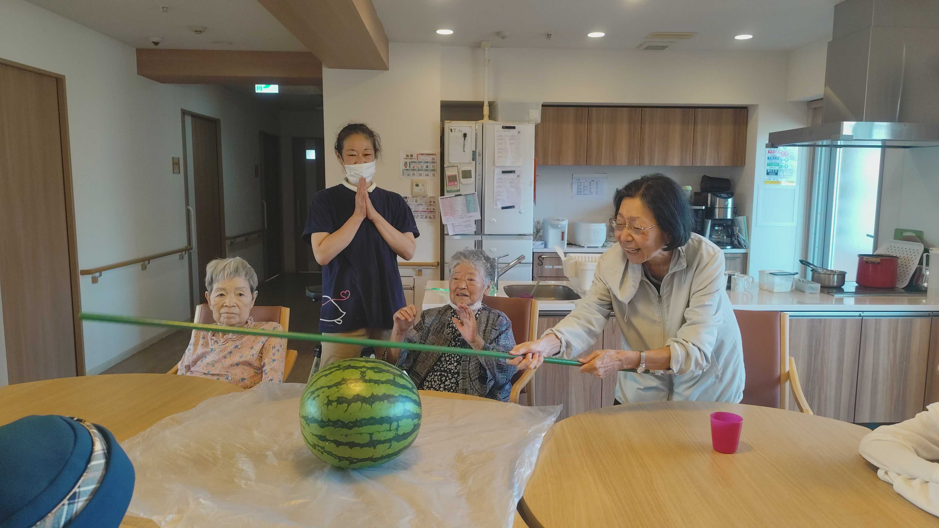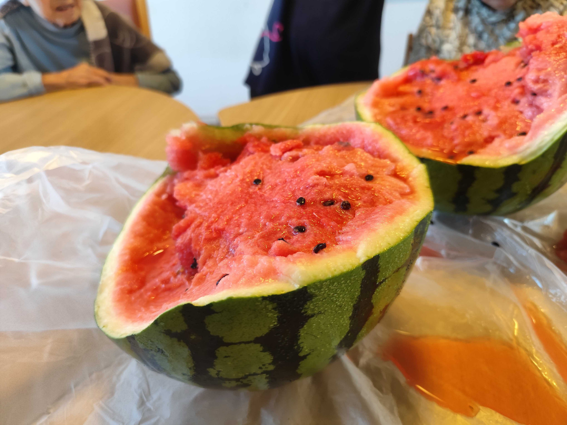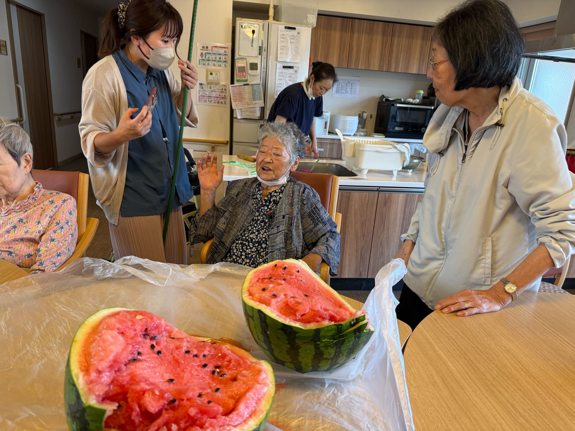 スイカを見て笑顔になる皆さんの表情に、こちらもほっこり。夏の風物詩を味わう、素敵な時間になりました。