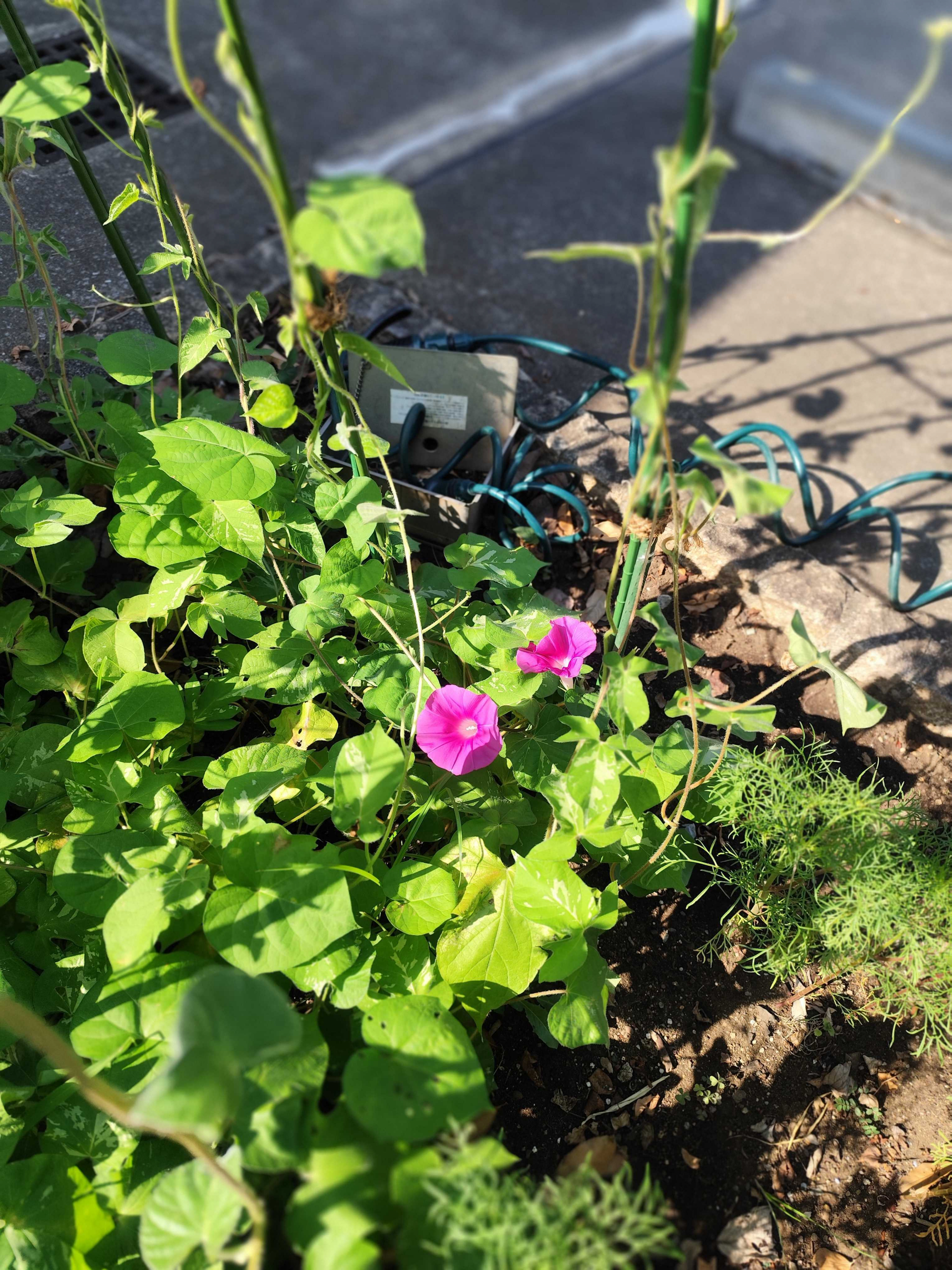 そして日曜日にコスモスが、そして本日の朝、朝顔が咲き始めました♪
