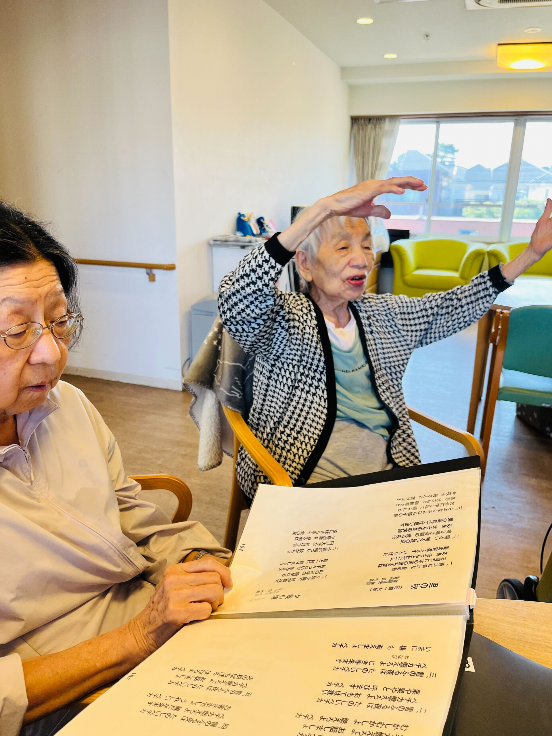 先週の木曜日、おやつの後に2階の皆さんと歌会をしました。
