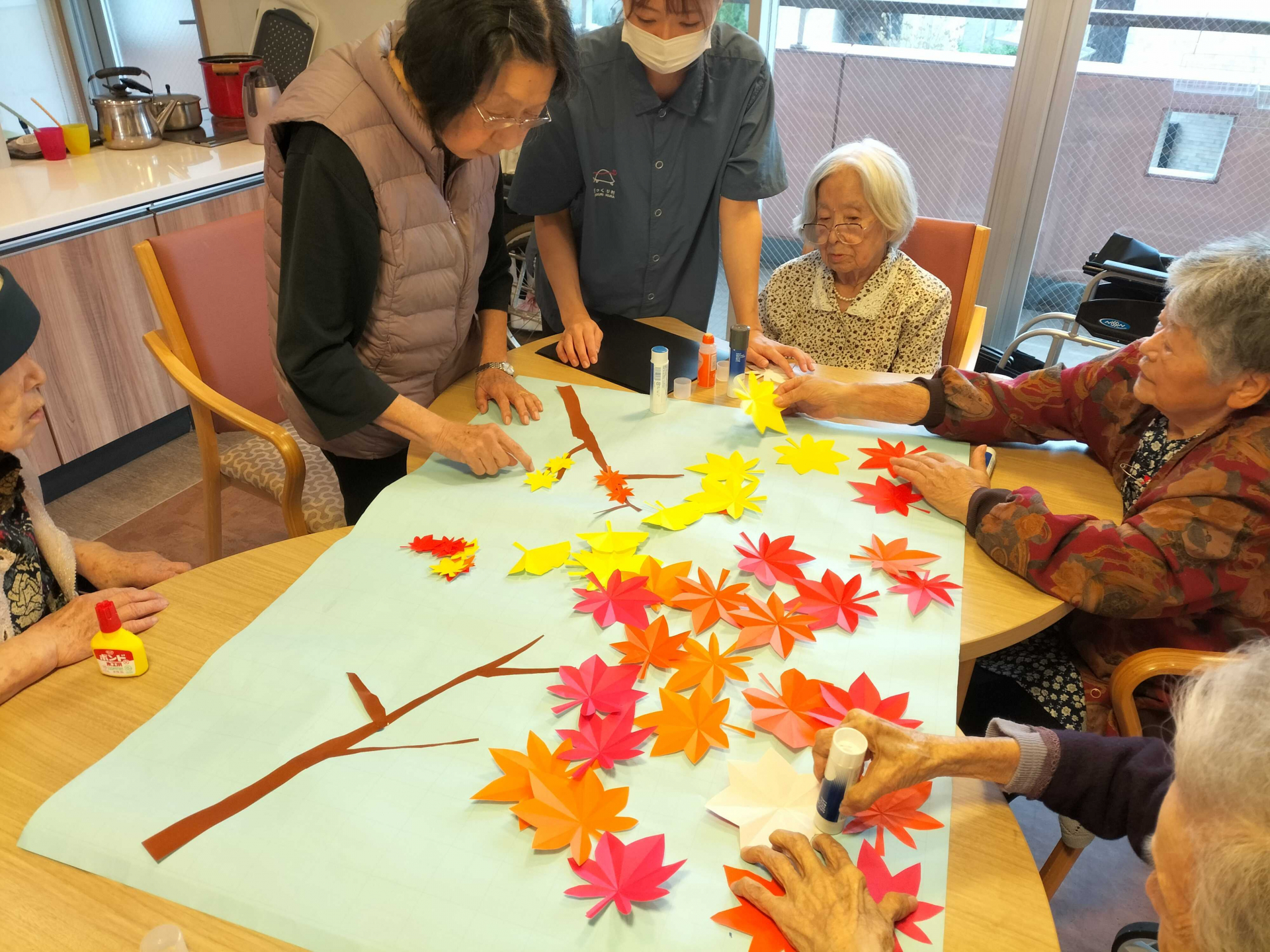 【グループホーム レク】紅葉の壁飾りを作りました(*´ω`*)