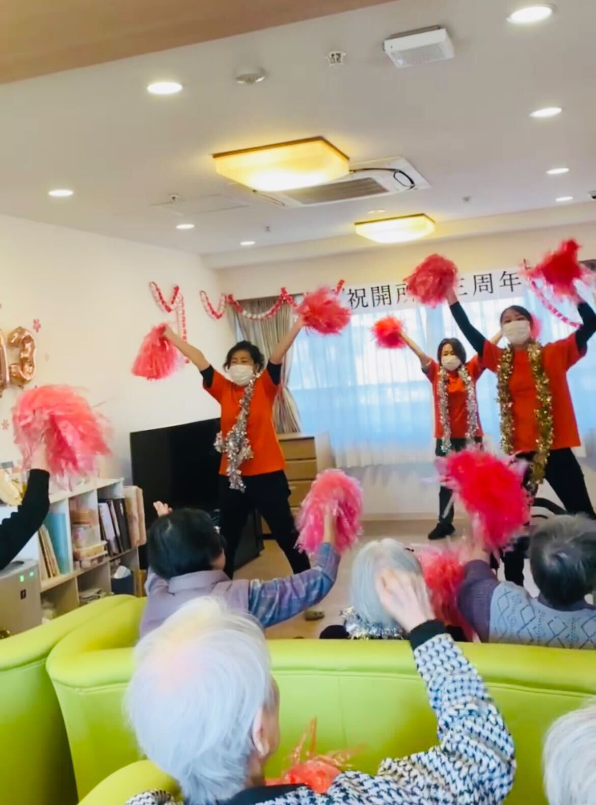 職員による出し物も、懐かしのダンスナンバーに合わせて入居者の皆様と歌って踊って、大盛り上がりでした!