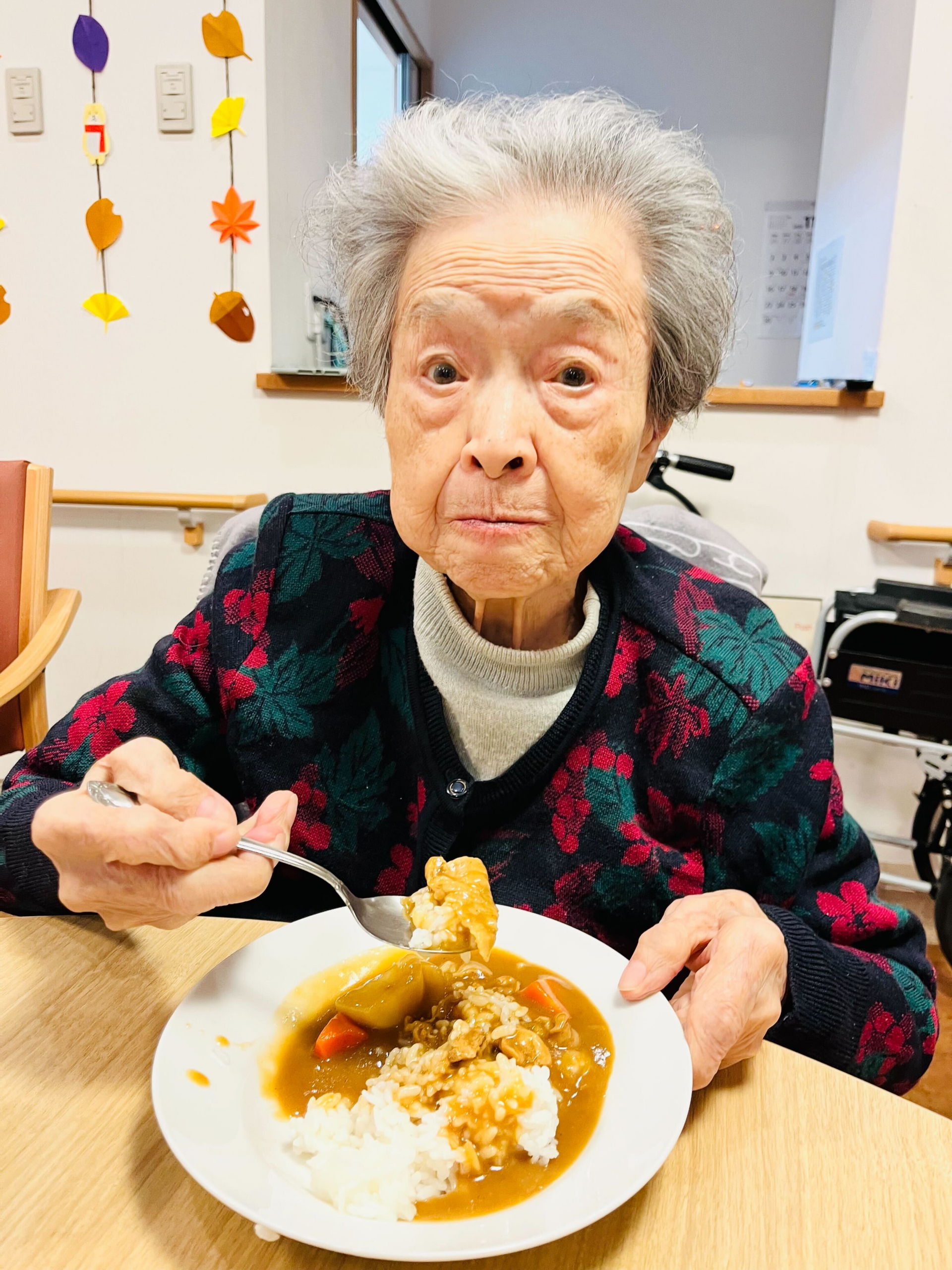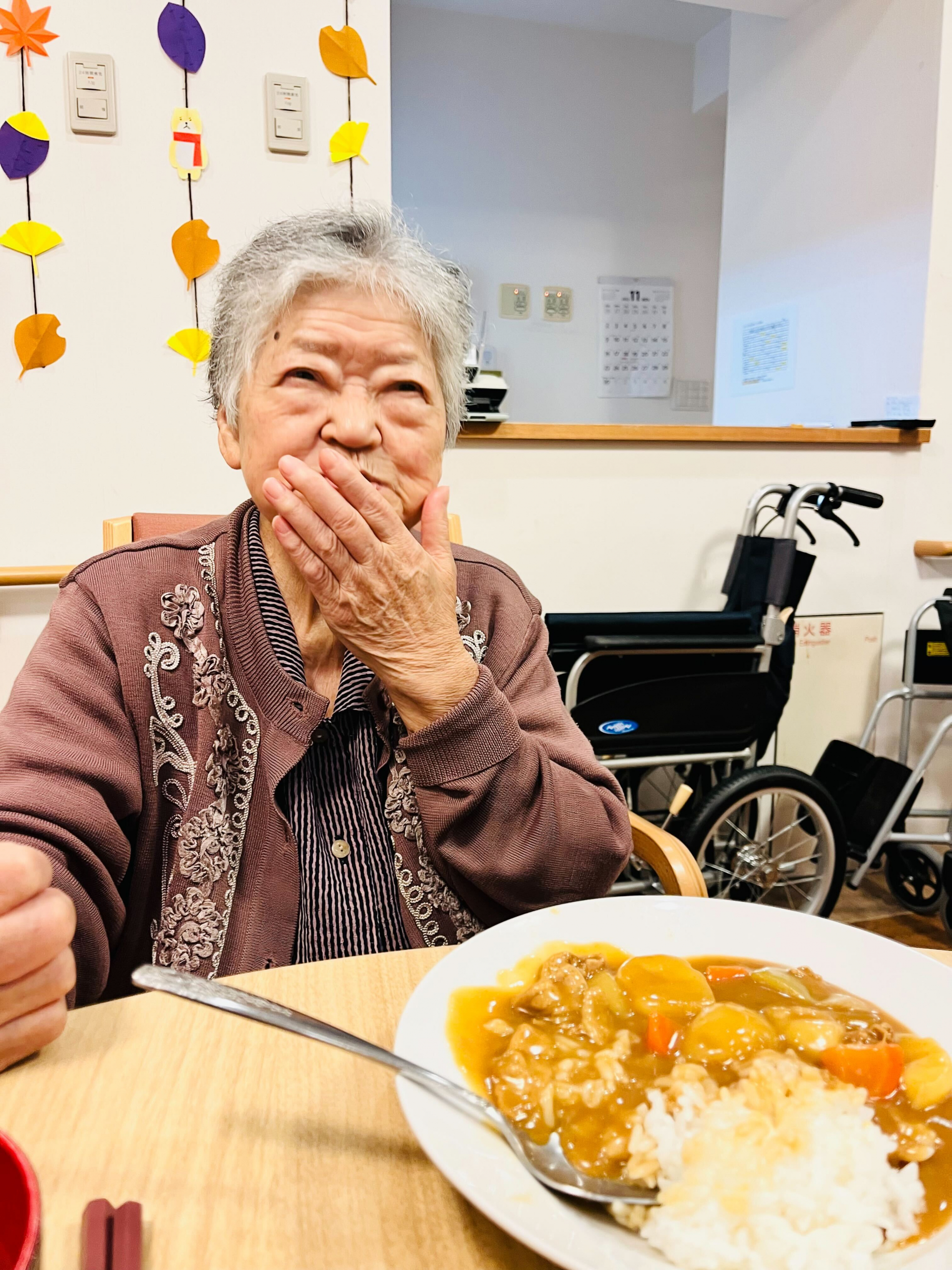 カレーをぐつぐつ煮込んでいると、おいしそうな香りがフロアいっぱいに広がり、入居者様が「もうできた?」と何度もカレーの様子を見に行っていました(*´▽`*)