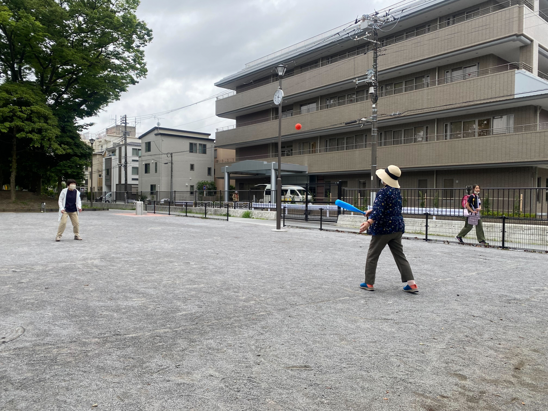 運動神経抜群な入居者様がいて、バッドで打ってボールが飛ぶ飛ぶ!!