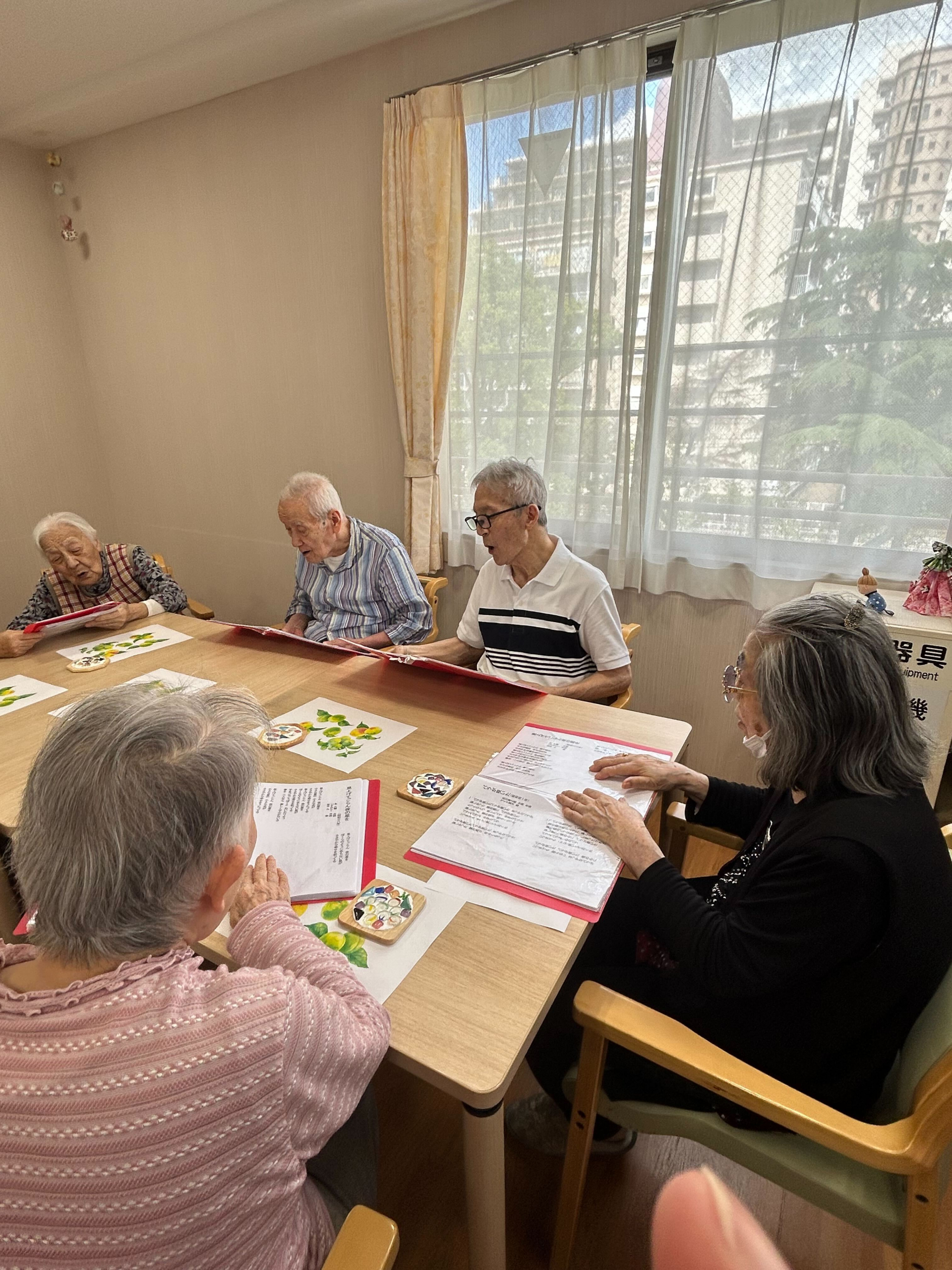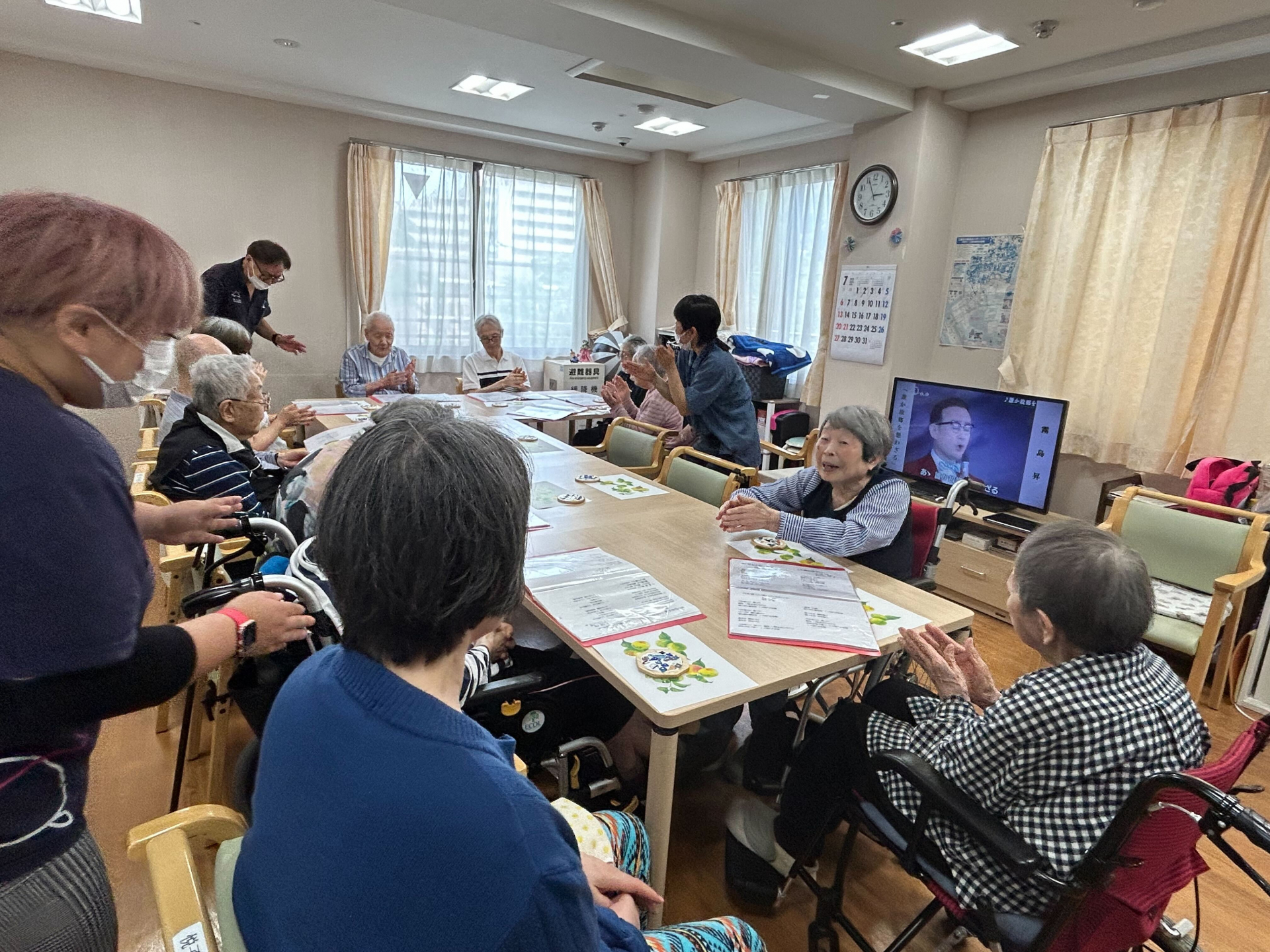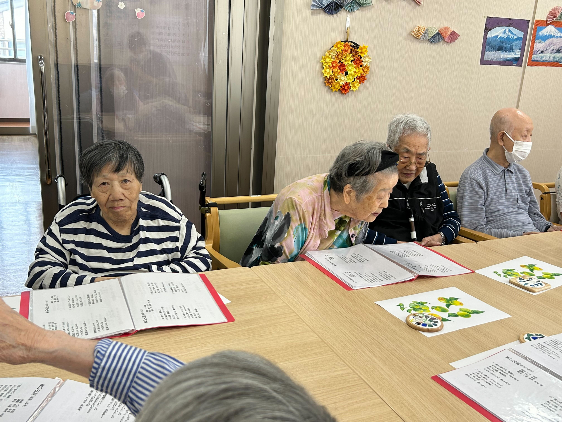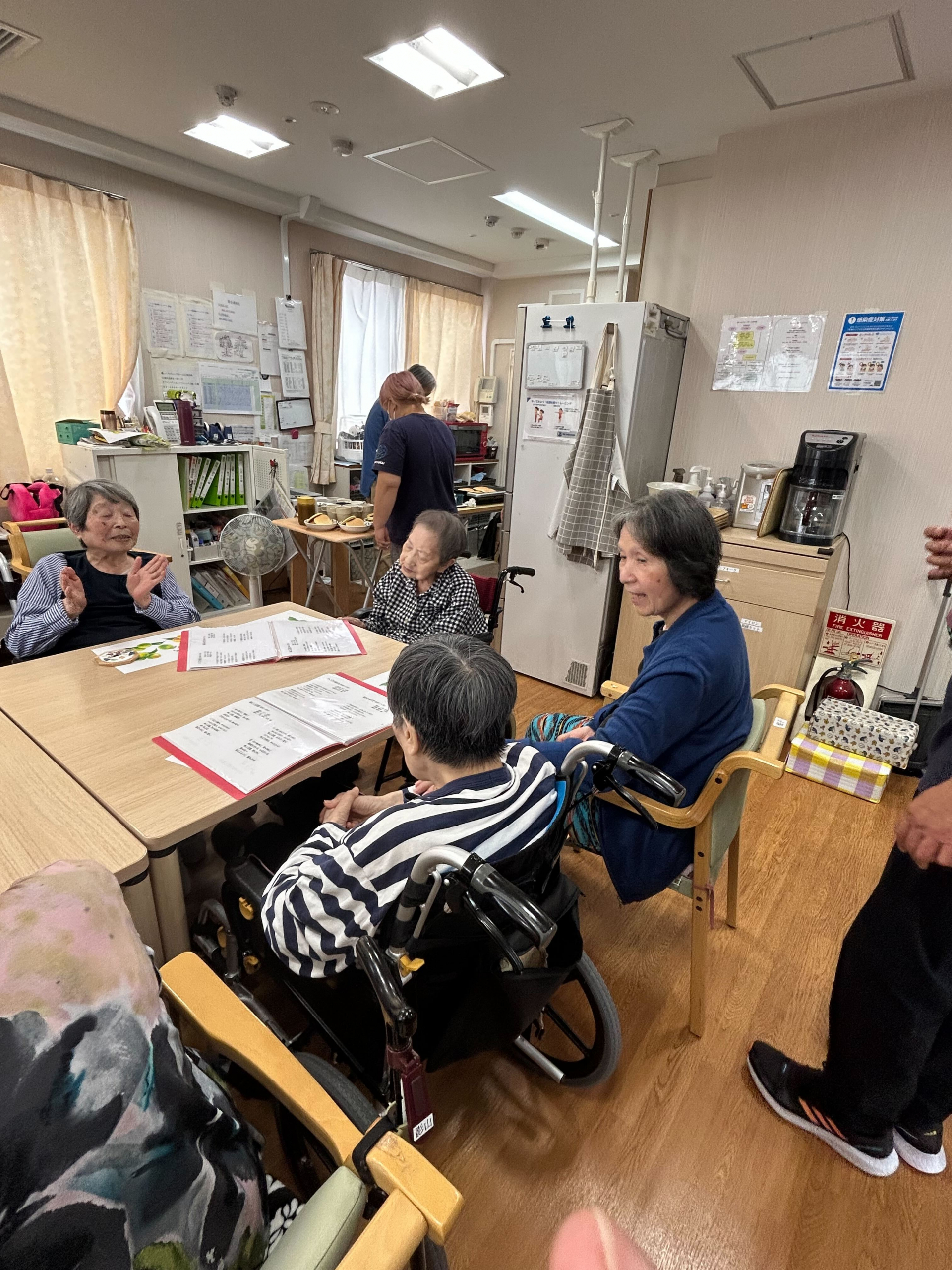 とその前に、3階に4階の皆様も集まり、おやつの時間まで歌のレクが行われました♪