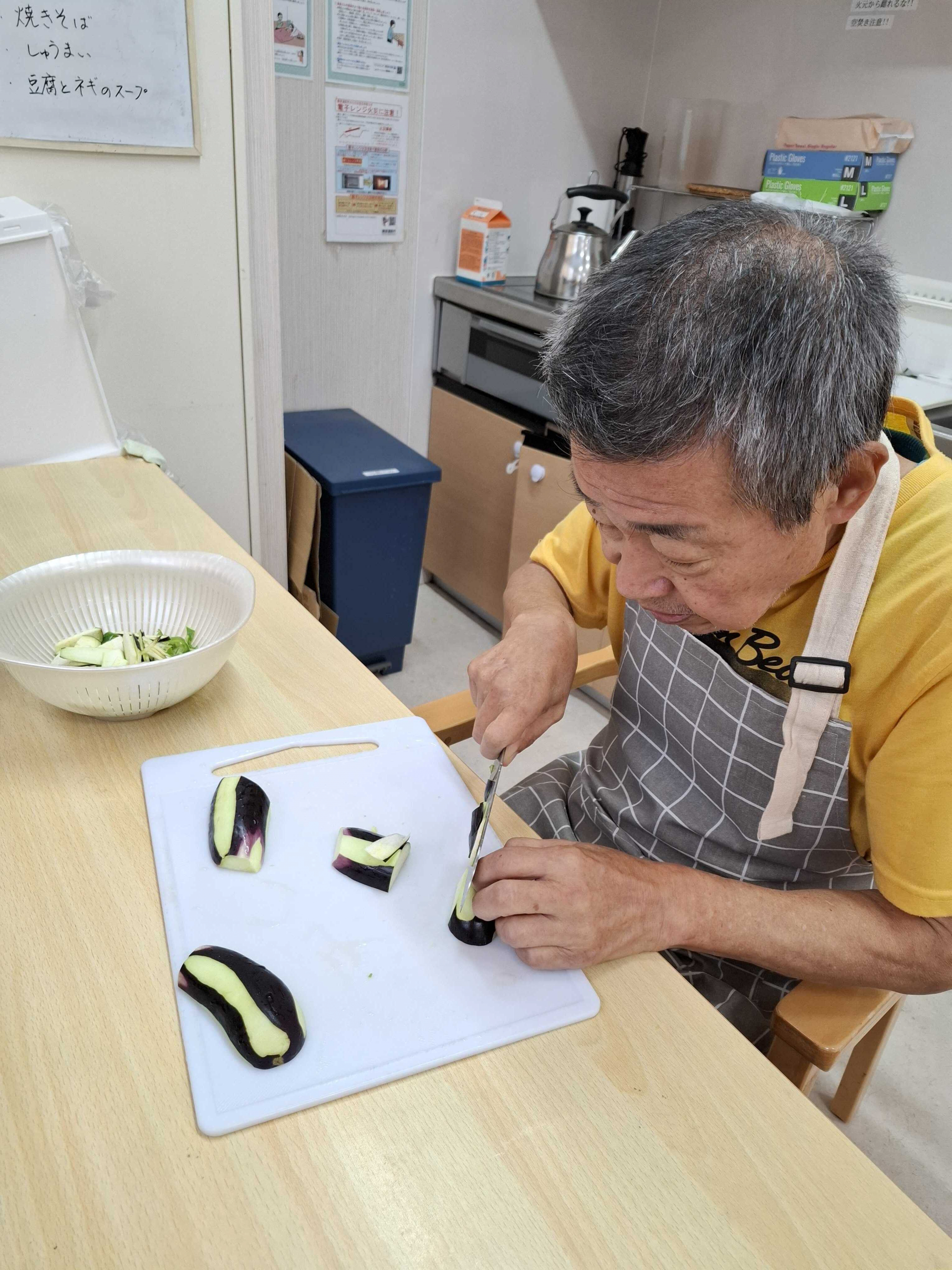 最近入居されたT様、入居前は家では料理をされていなかったようですが、こちらでは野菜を切ったり、メモ用紙を切って作ってくださったりと、お手伝いをしてくださっています!