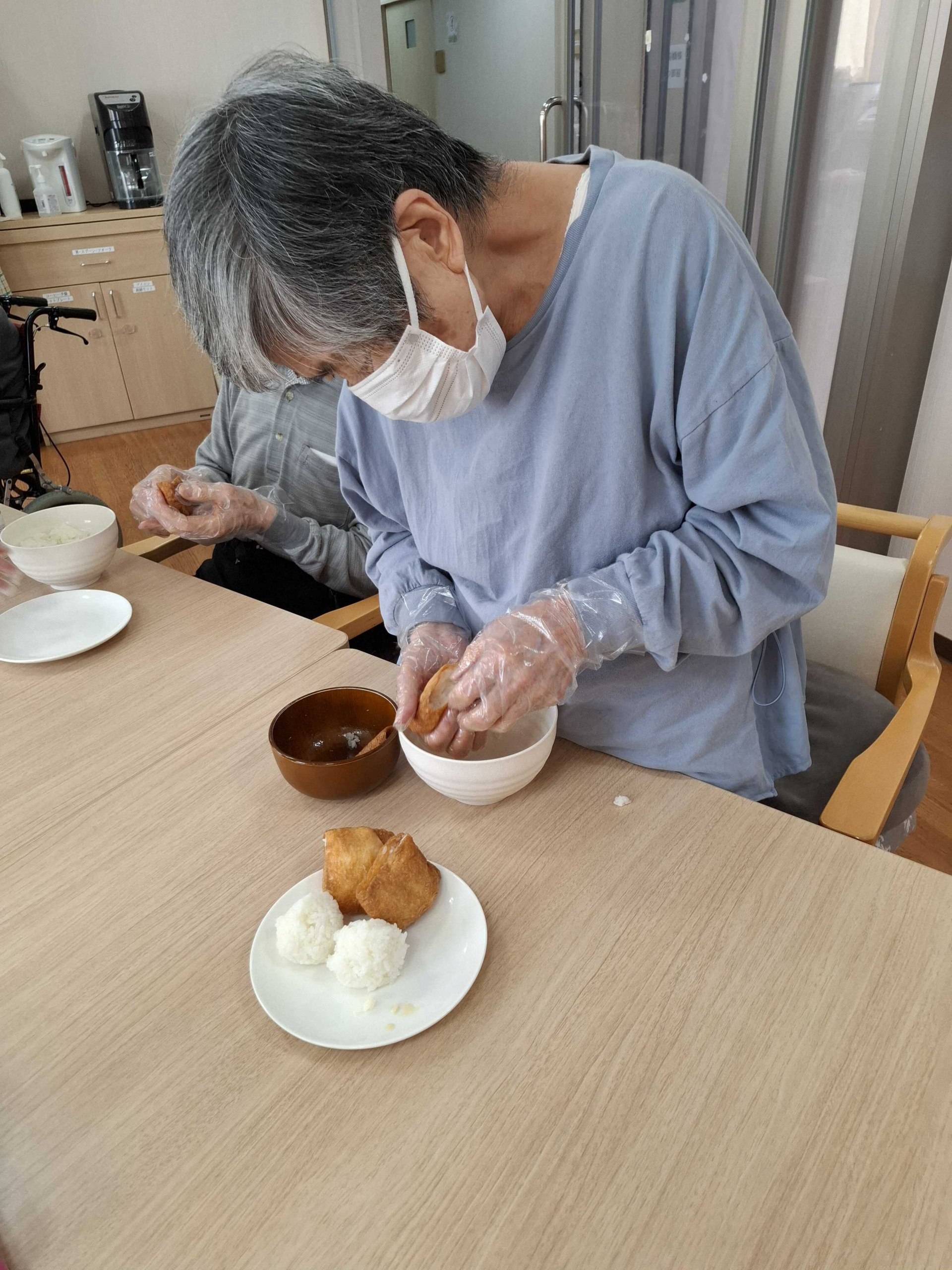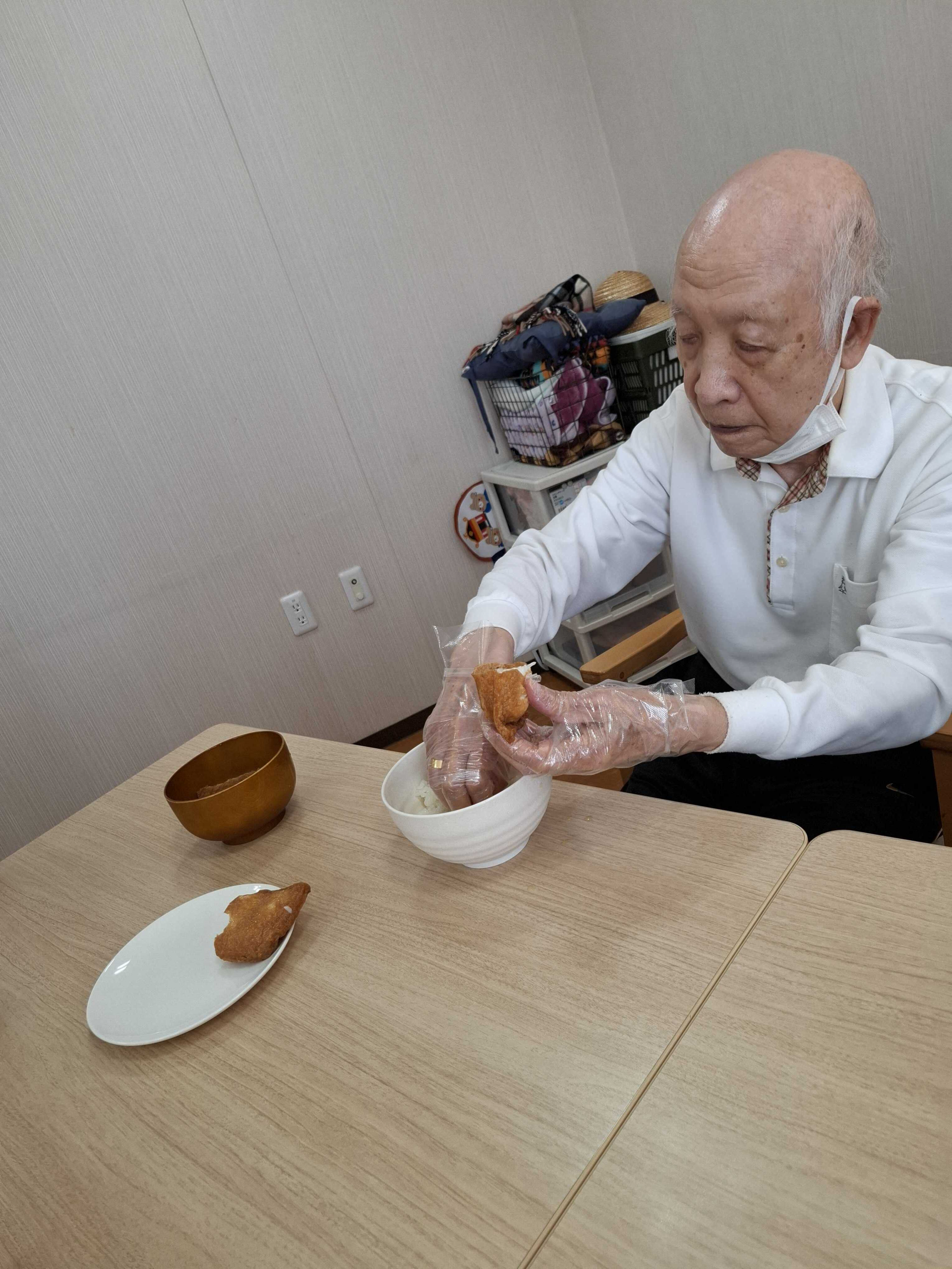 2025.10.05 活動報告(IN) おいなりさん☆ Tweet シェアする 本日の昼食のおいなりさんをみなさんと一緒に作っていただきました♪ 皆様ありがとうございます!! そして、午後はお散歩に行きました♪ ゆっくりグループホーム江東北砂 本間 前の記事 2025.10.08 活動報告(IN) お手玉作り♪ 次の記事 2025.10.01 活動報告(IN) 本日の4階のご様子(足置き作り)♪ 一覧へ戻る