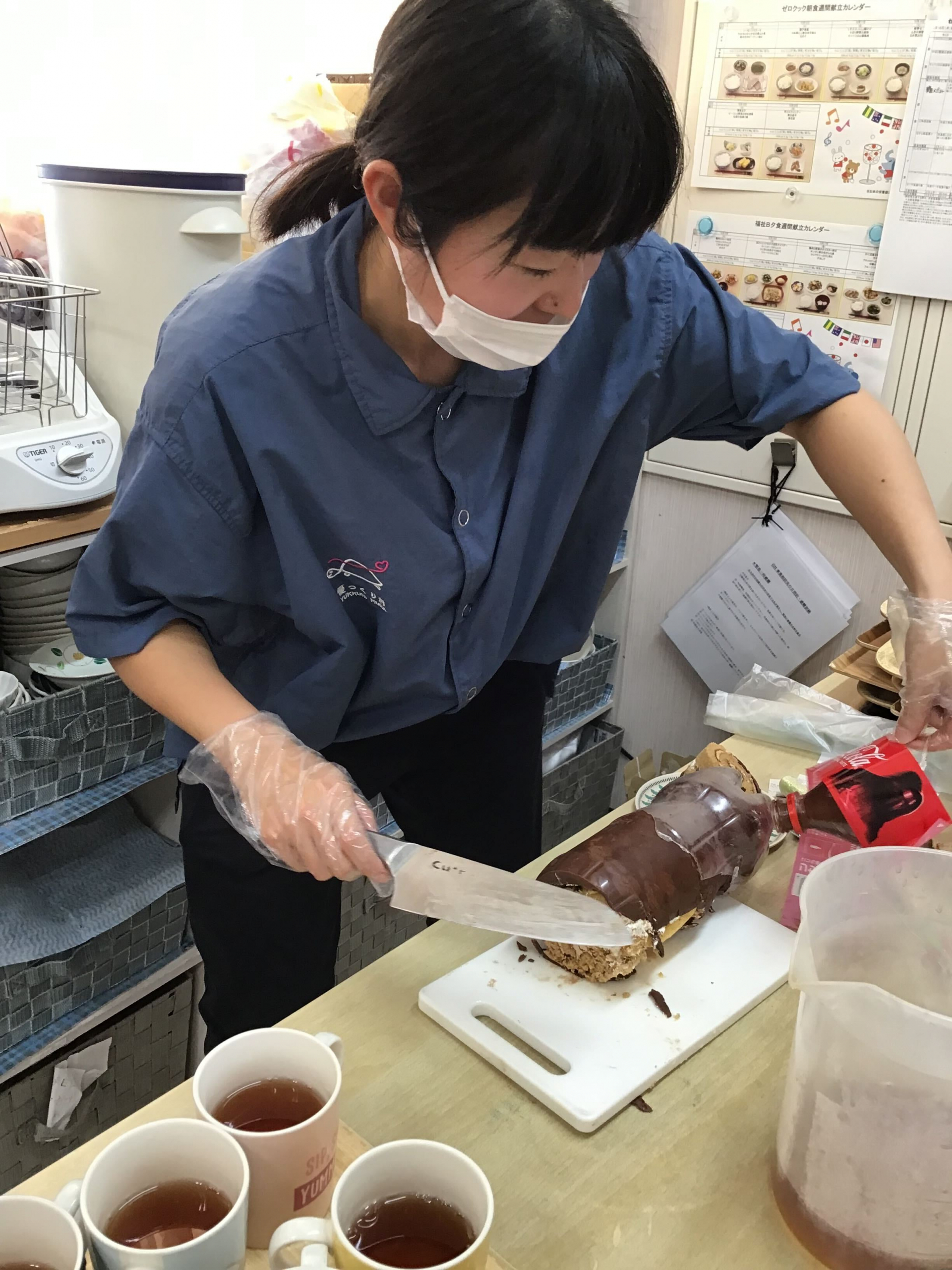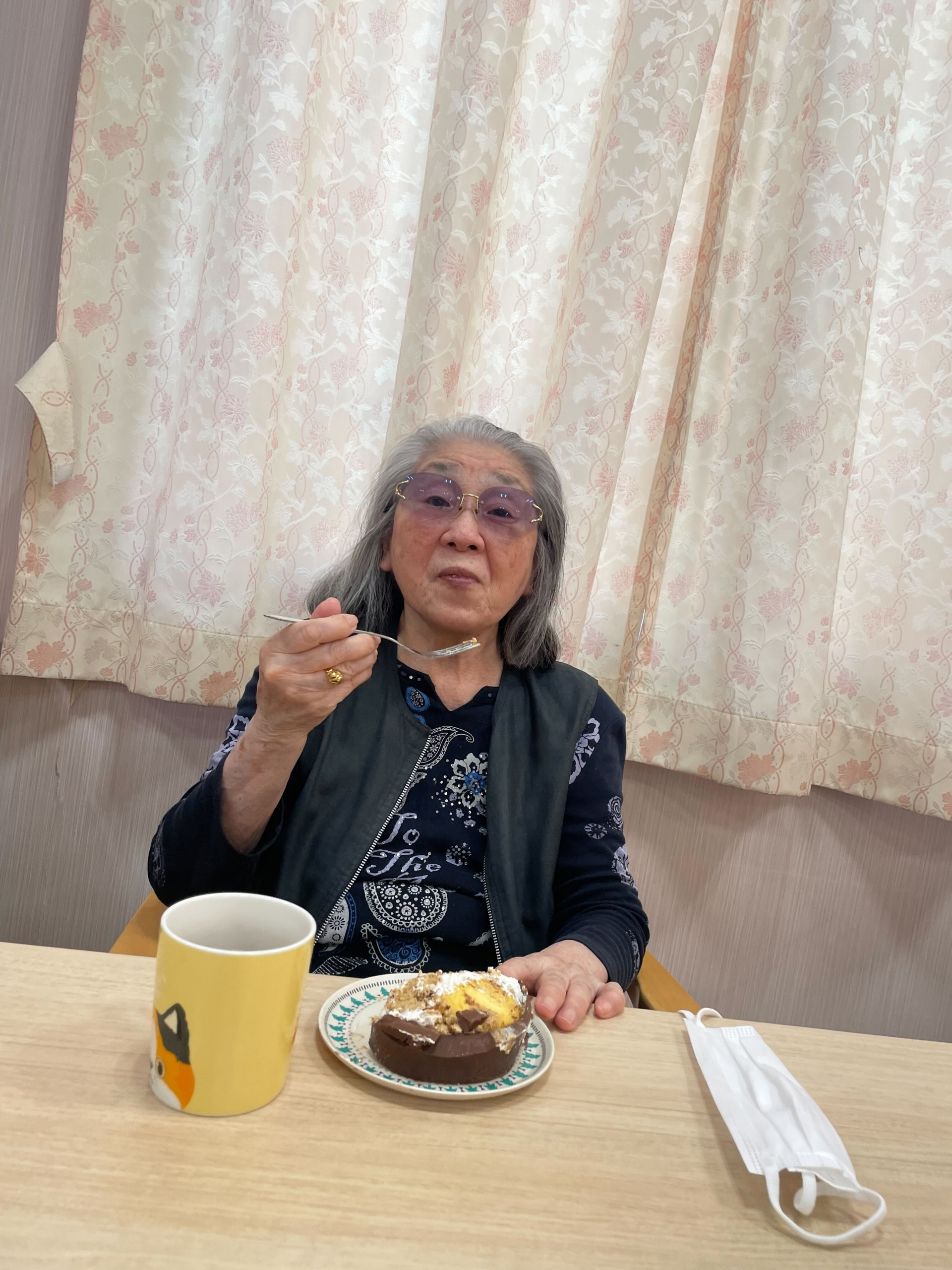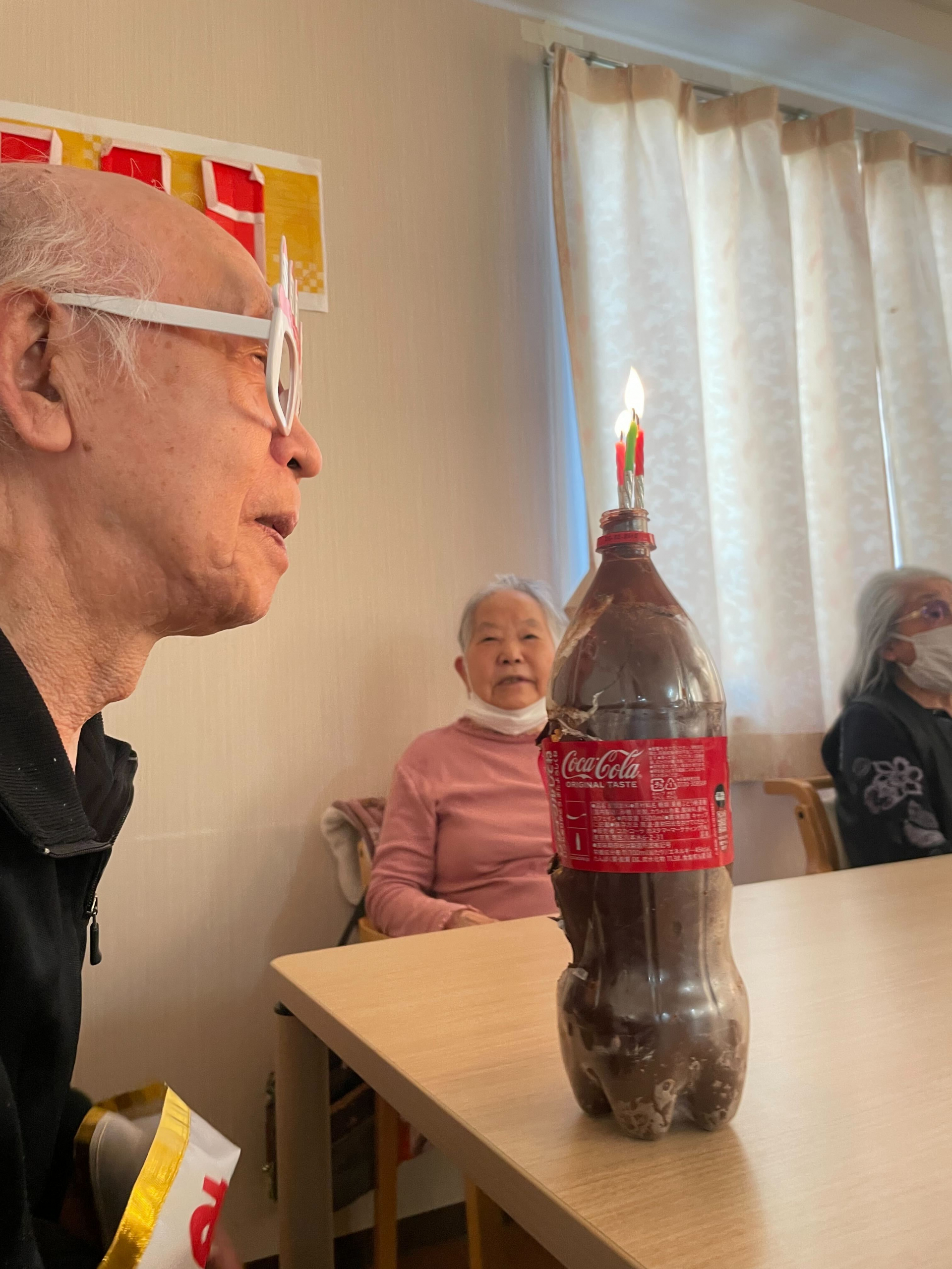 コーラが大好きなので、見た目にインパクトがあるコーラ型のチョコケーキを、パート職員さんが他入居者と共に手作りしてくださいました!!