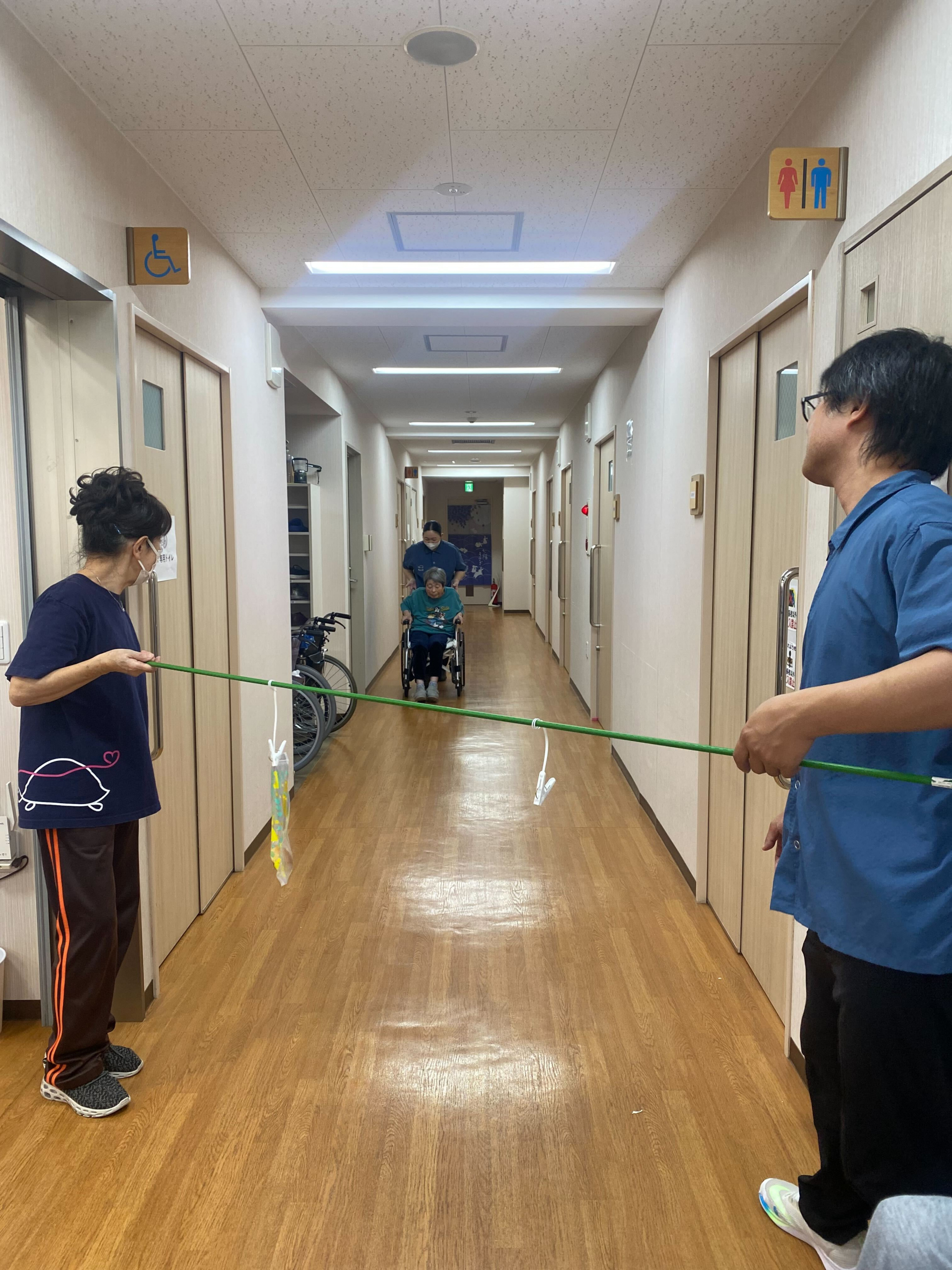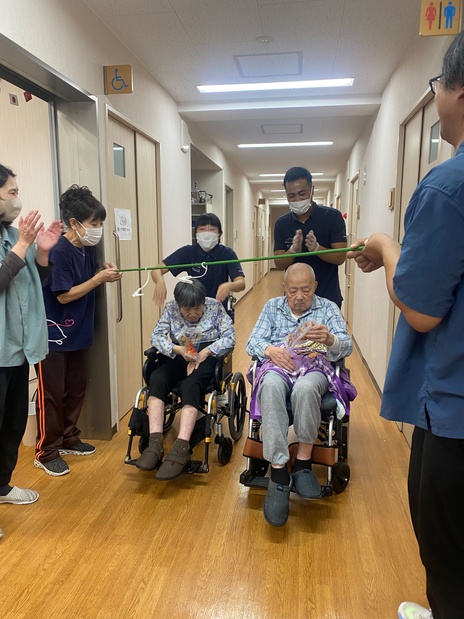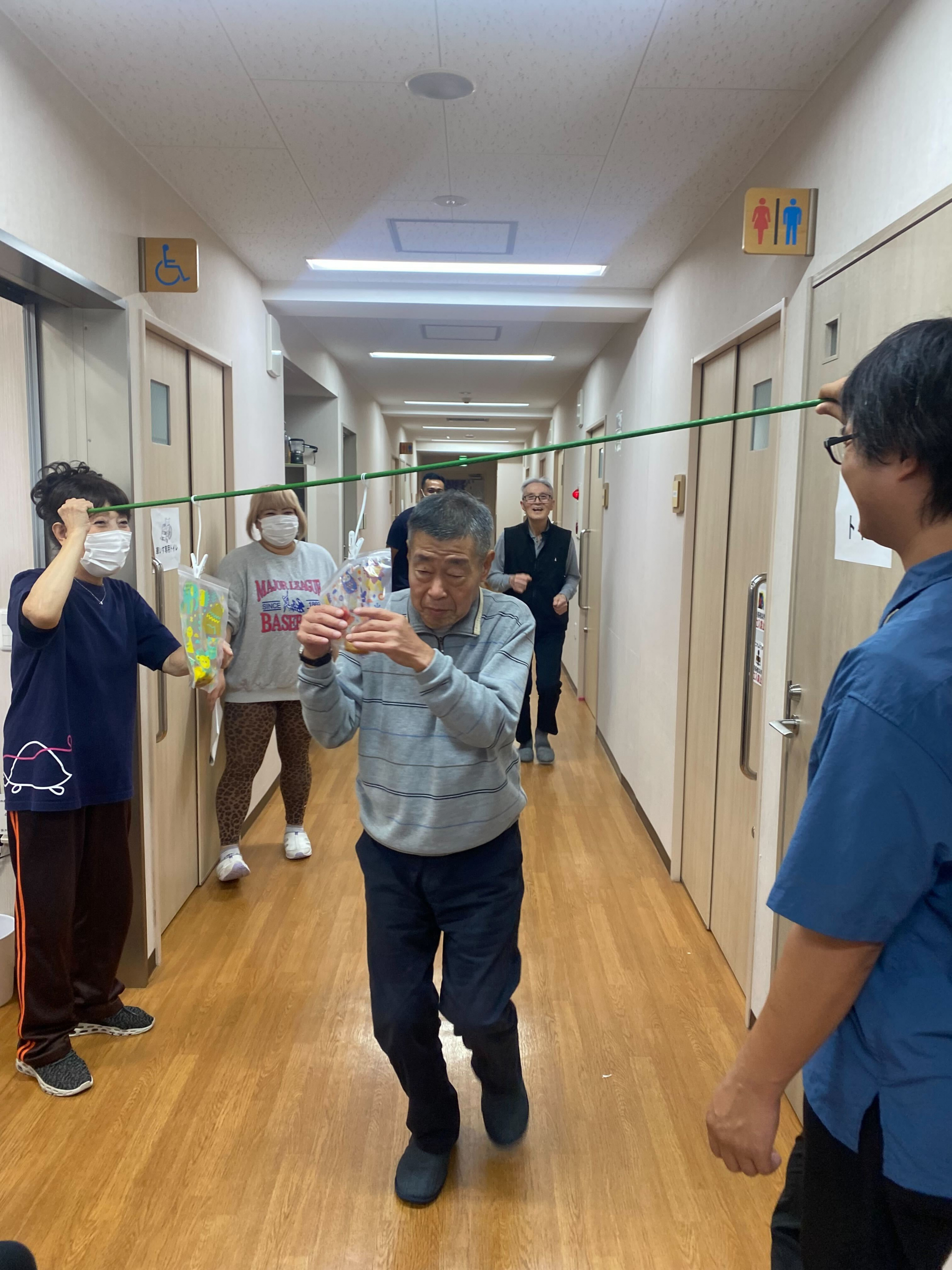 入居者様は2人並んで競歩します!職員は本気で走ります!(安全に配慮しております)