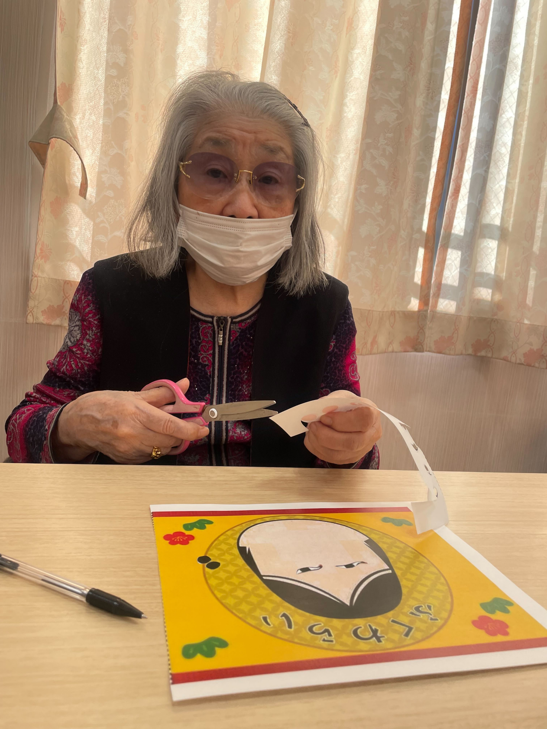 お正月の遊びと言えば、たこ上げや羽根つきなどの遊びがありますが、本日は屋内でも遊べる遊び、福笑いを行いました♪
