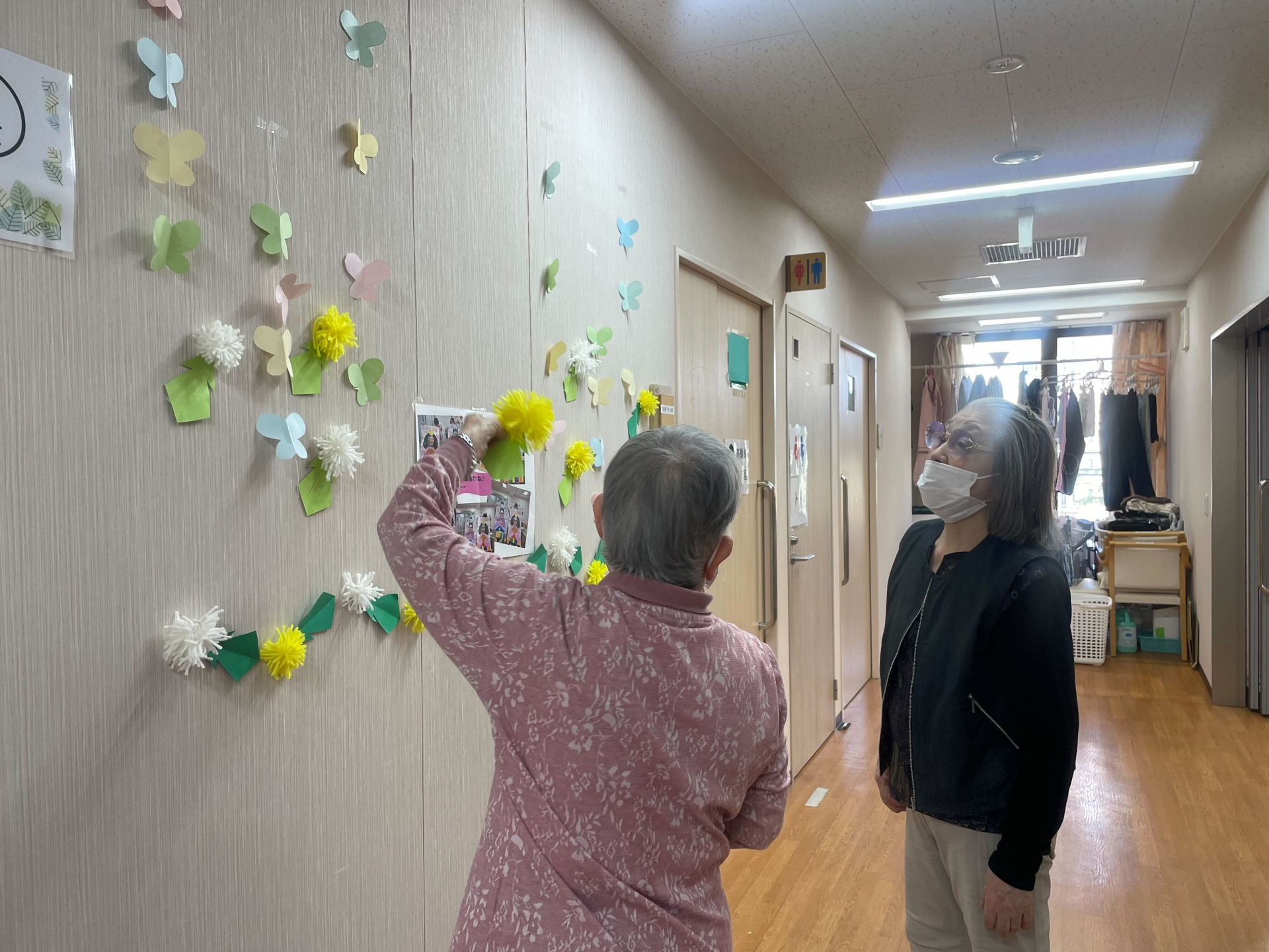 その後はたんぽぽ作りをして、エレベーター前の壁に貼ってます♪