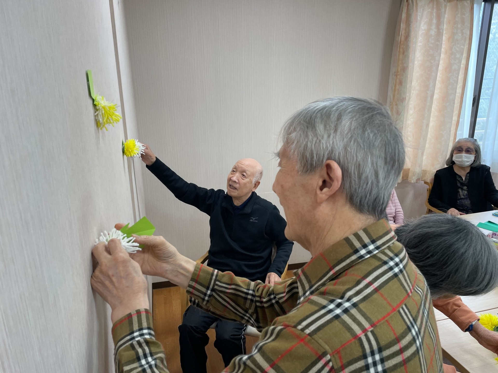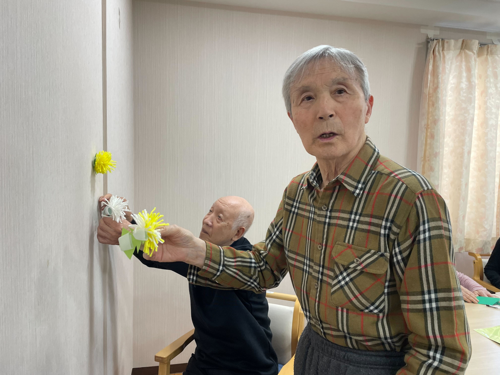 本日は、共有スペースにも春を感じさせる装飾を作りました!