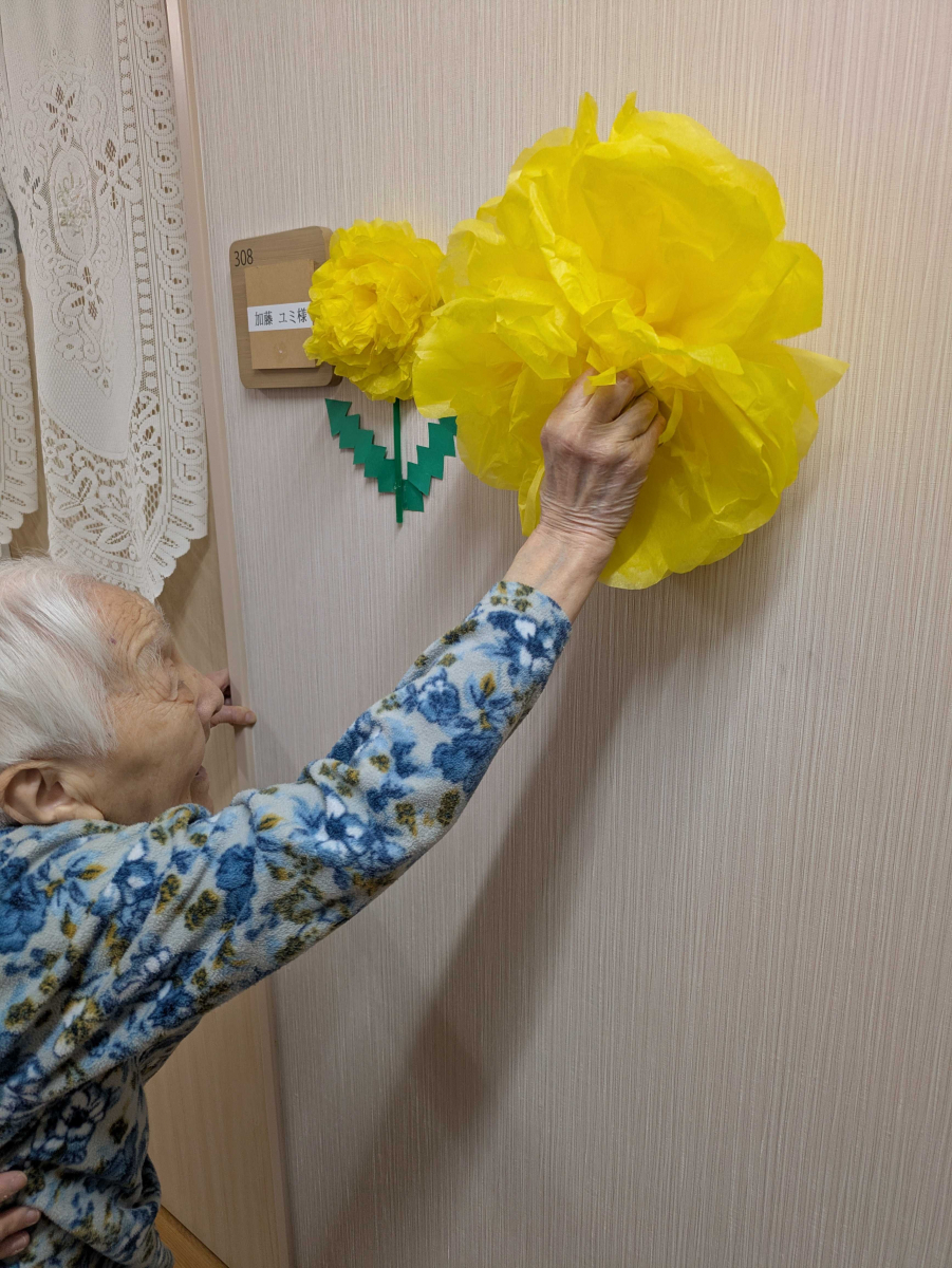 2026.04.02 活動報告(IN) お花飾り作り② 3階 Tweet シェアする 完成したお花飾りを壁に飾りました♪ 皆さん、「きれい」「かわいい」と喜んでくださりました♪ 優っくりグループホーム江東北砂 浅見 前の記事 2026.04.03 活動報告(IN) 本日のお散歩 3階編 次の記事 2026.04.02 活動報告(IN) お花飾り作り① 3階 一覧へ戻る