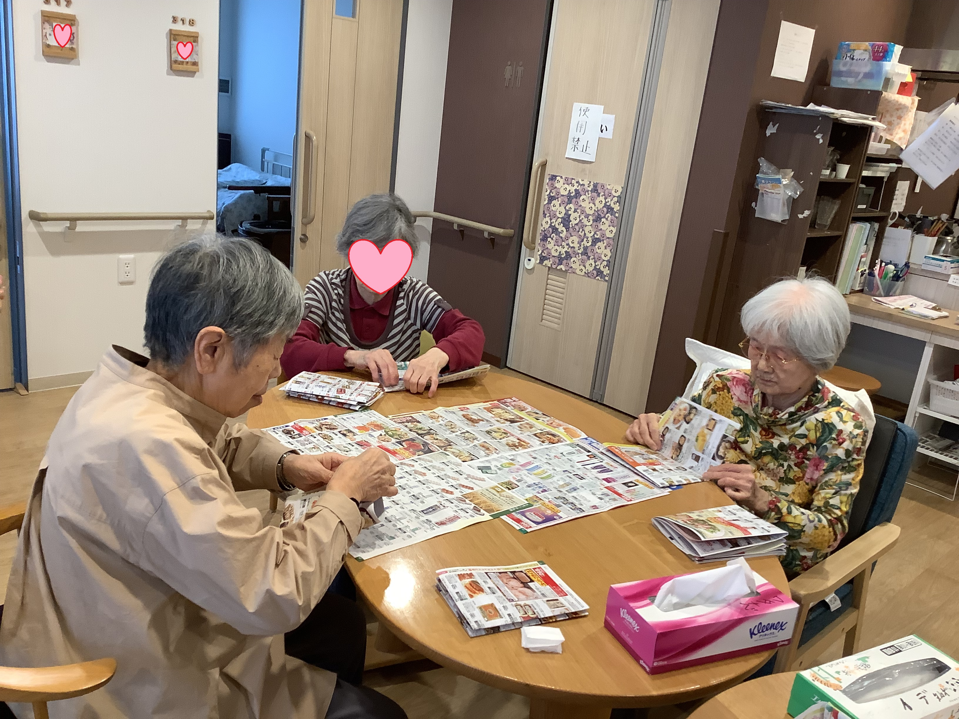 2023.11.25 活動報告 ☆WEST☆ 午前中のご様子② Tweet シェアする チラシ折りも分担で・・ 1・2・1・2足上げて・・ 新聞を熟読中~。 I様も熟読中~。 サンタ帽子にトナカイカチューシャ☆ とても似合ってます(#^^#) きむら 前の記事 2023.11.26 活動報告 本日のEASTフロア 次の記事 2023.11.25 活動報告 ☆WEST☆ 午前中のご様子① 一覧へ戻る