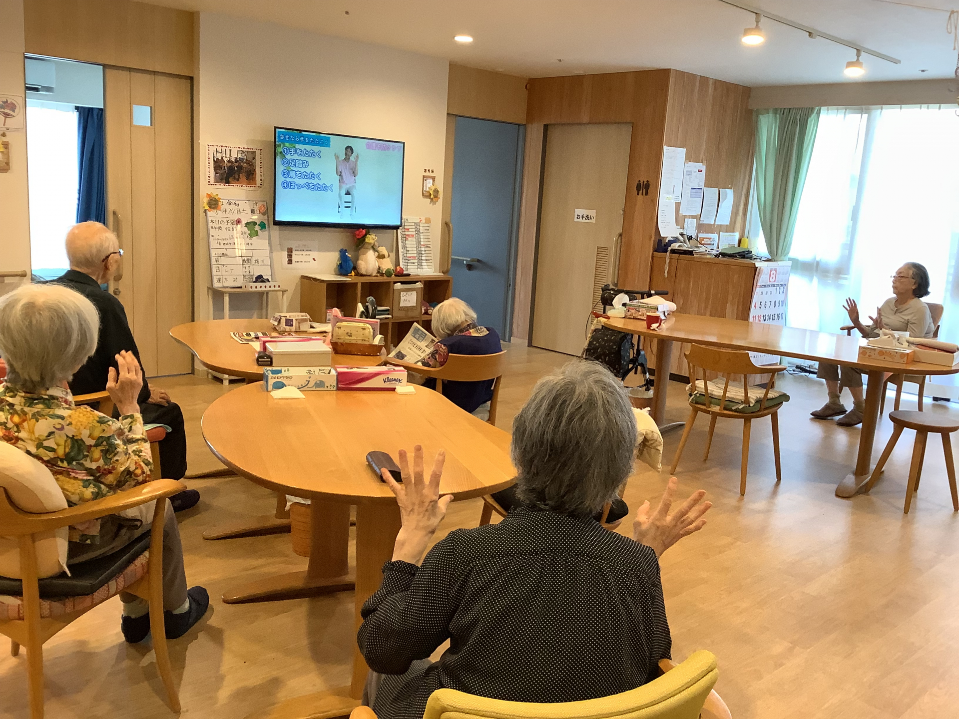 昼食前の体操も日課の一つ(^^♪