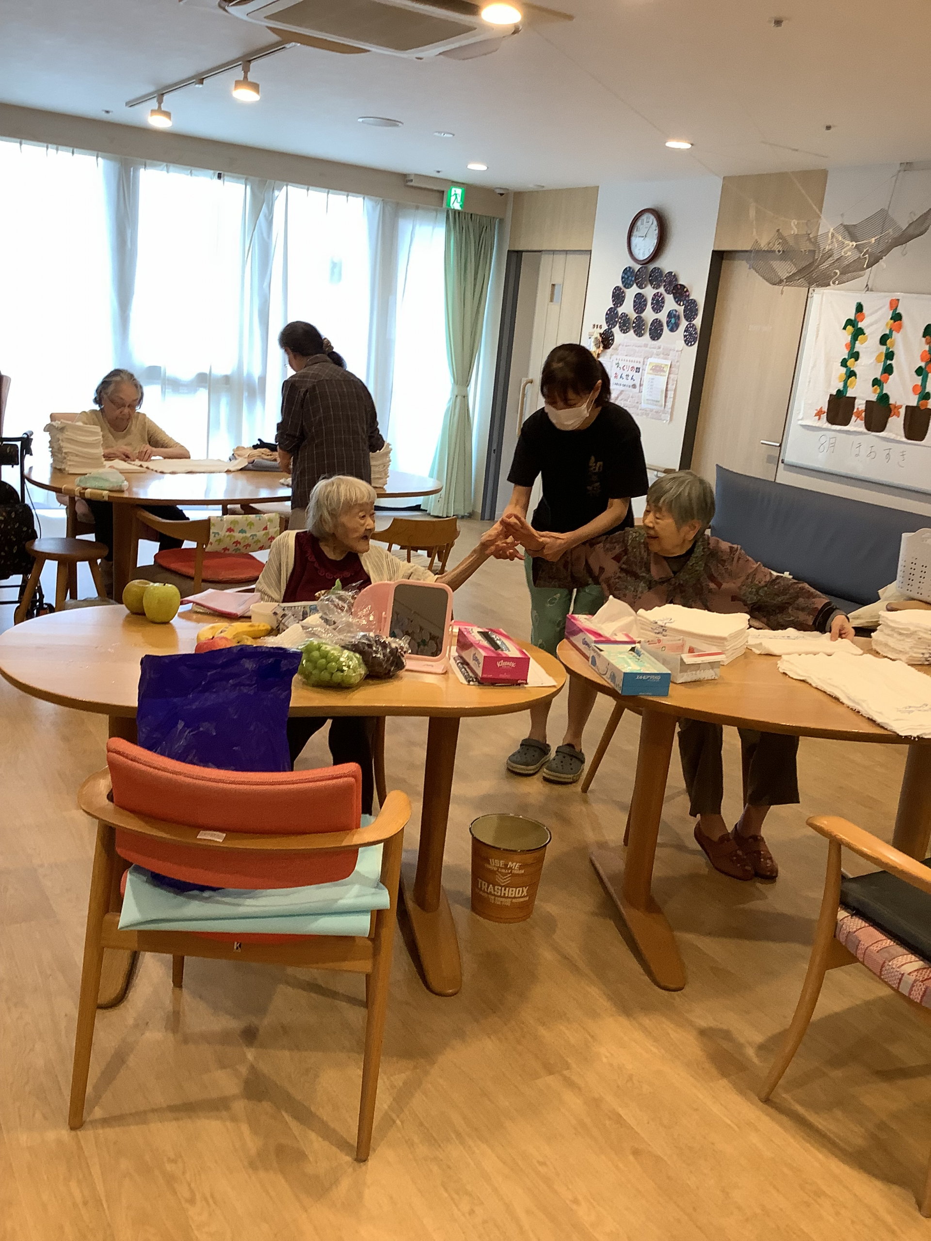 「お誕生日おめでとう」「ありがとう」お隣さん同士お話をされています。。