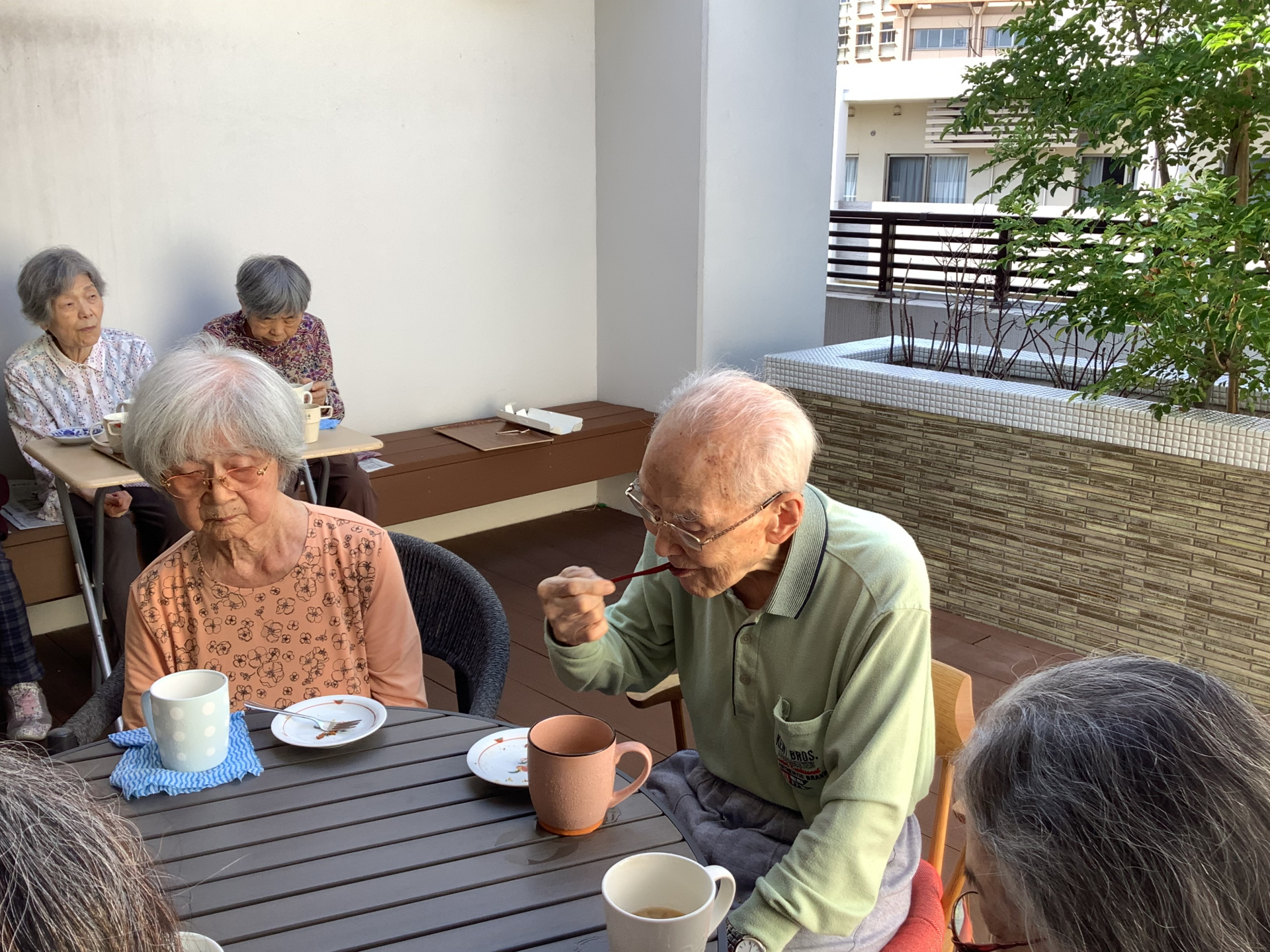心地よい風が吹いておりアイスコーヒのお供は「カステラ」♬