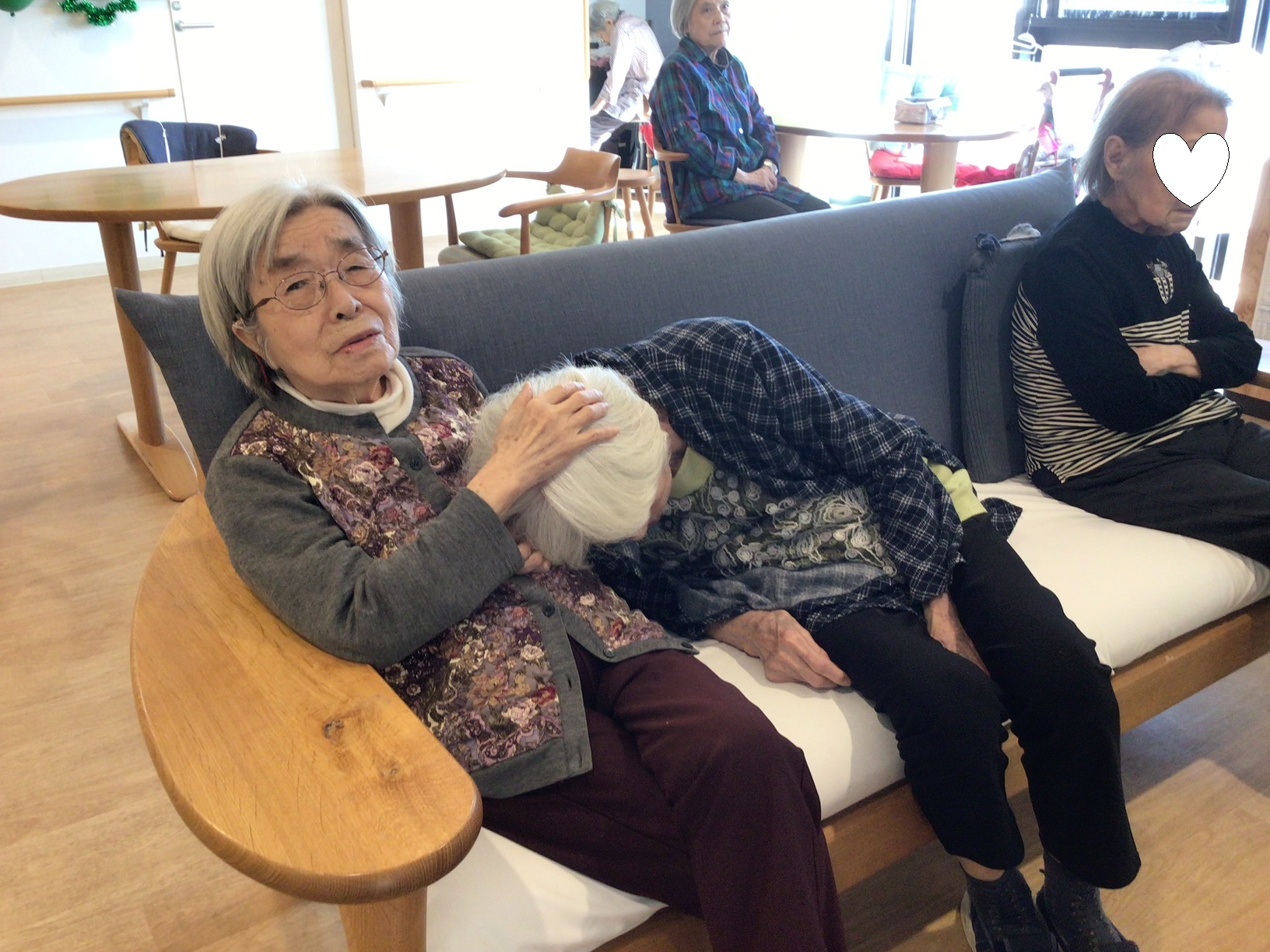 午前の時にI様はソファーに寝てしまうのでお隣の方I様も「ねーね―する、よしよし」と仰る、、(笑)
