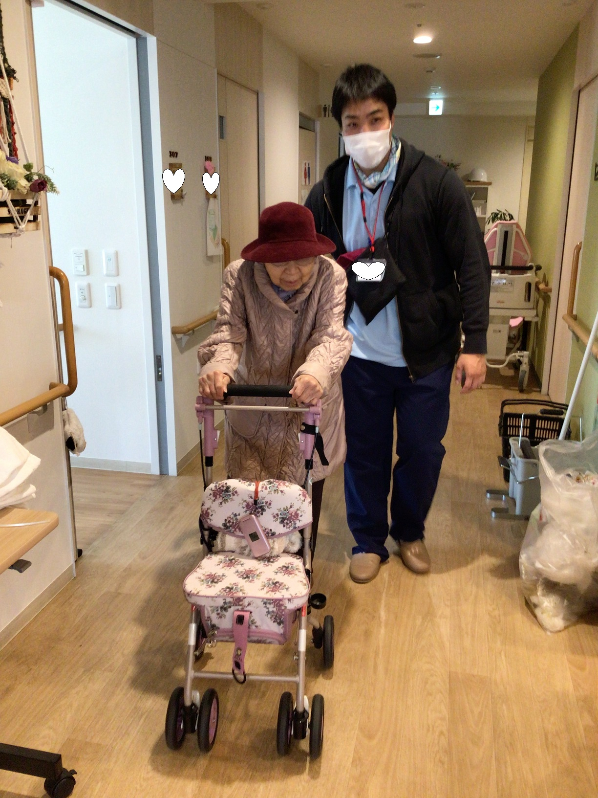 本日はリハビリ先生と一緒に外までお散歩を頑張ってしました、、