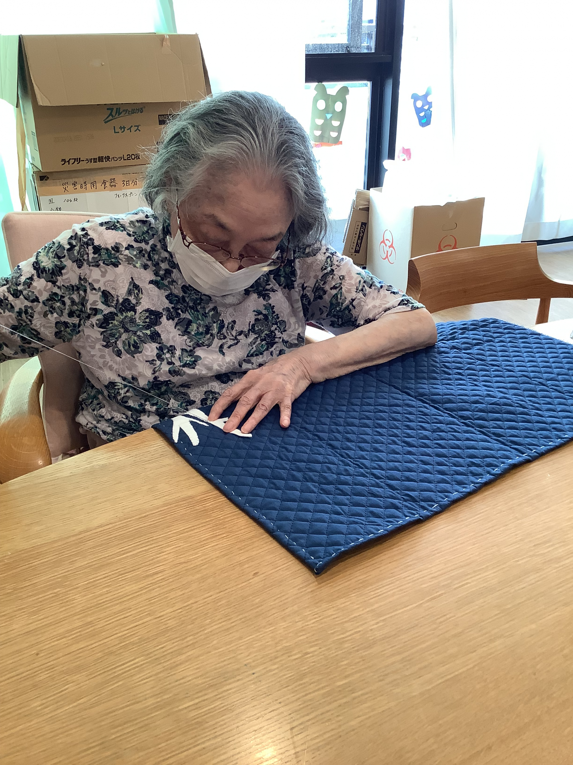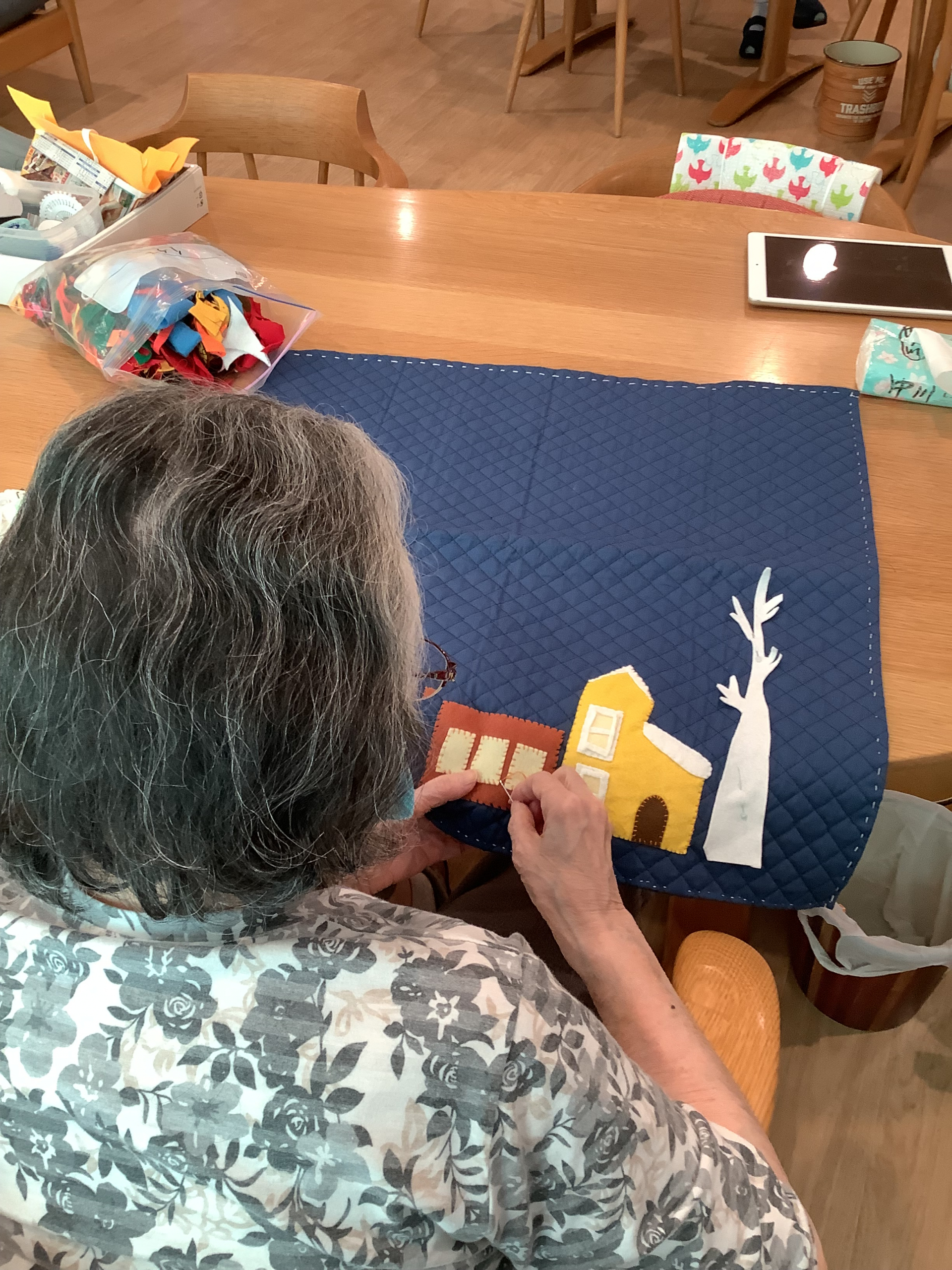 丁寧に丁寧に縫ってくださいました。秋の壁面が終了しましたので、次は冬の壁面飾りに取り掛かります。