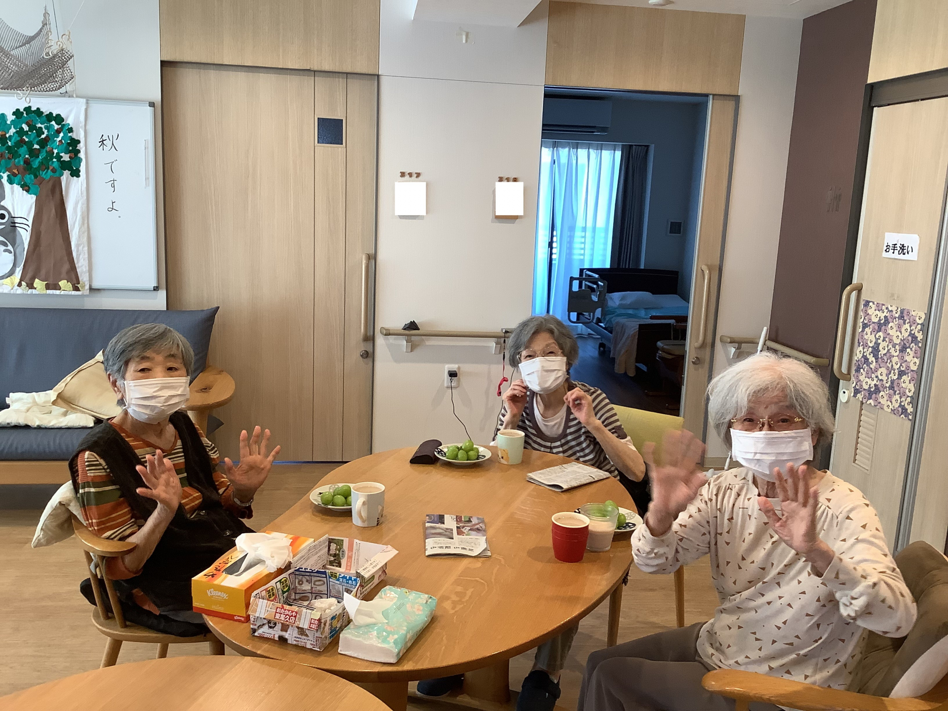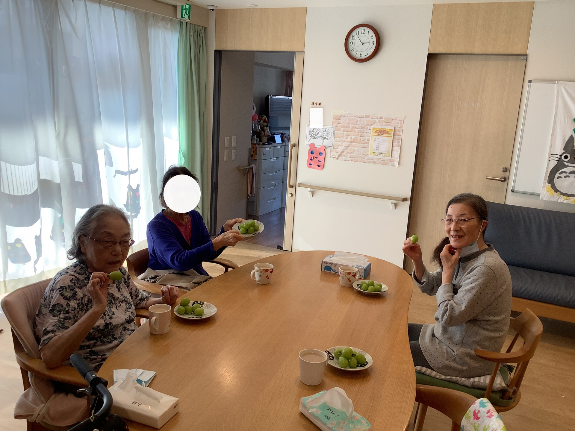 本日 隣の部屋からⅠ様家族より送ったシャインマスカットを頂きま取いた。