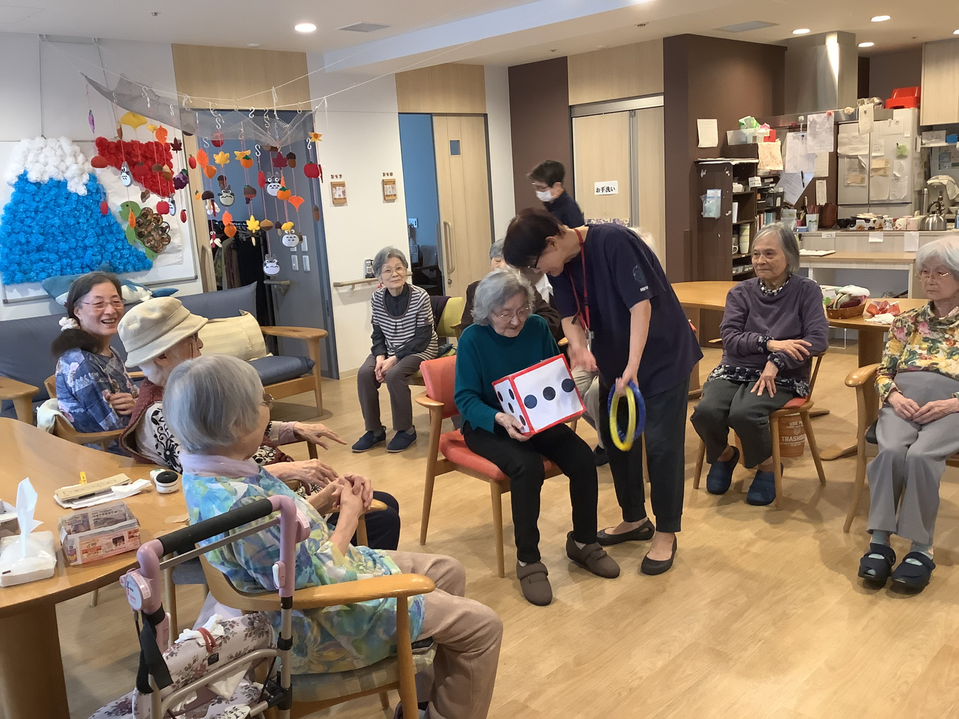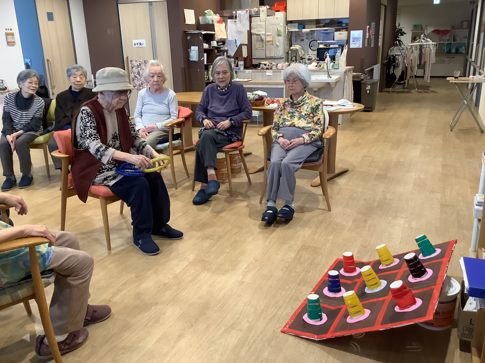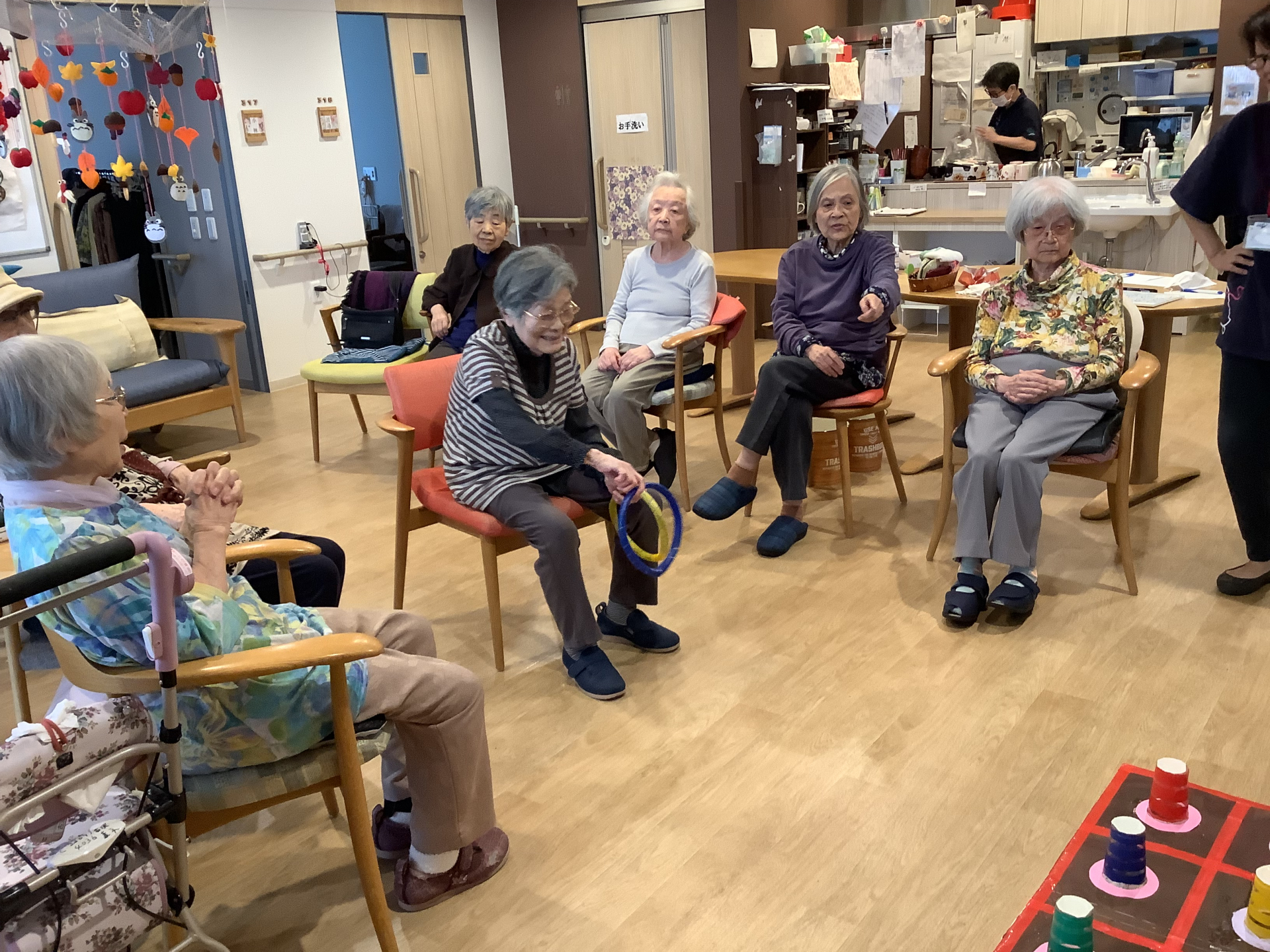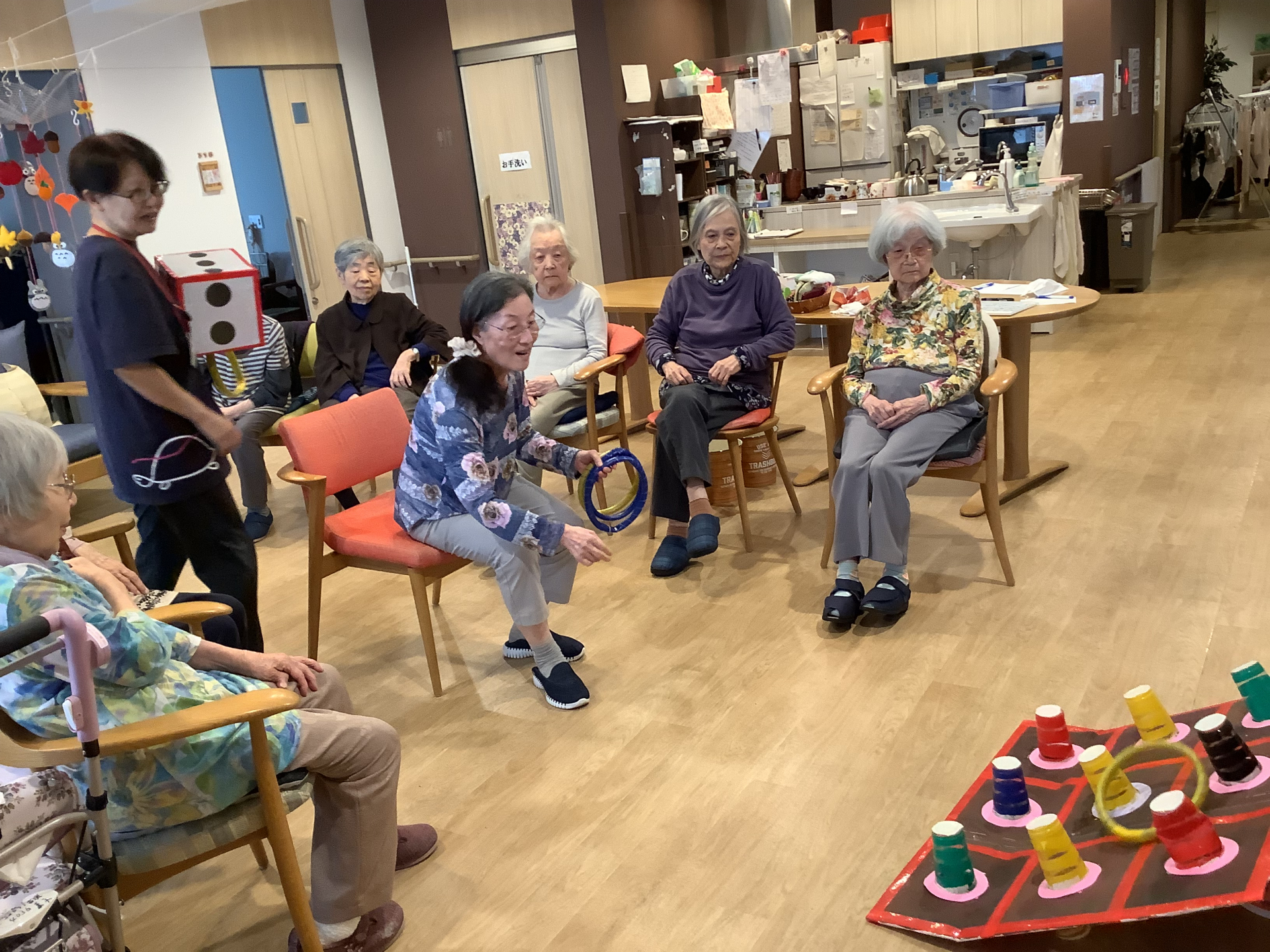 2024.10.09 活動報告 ☆彡輪投げ☆彡 WEST Tweet シェアする 今日は雨。室内でレクレーション 輪投げ大会 案外難しく思うように入らなかったです。 また次回 小日向GH 秋羽 前の記事 2024.10.09 活動報告 (^0^)EAST ハロウィンの壁飾り 次の記事 2024.10.09 活動報告 ☆彡WEST☆彡 温泉週間 一覧へ戻る