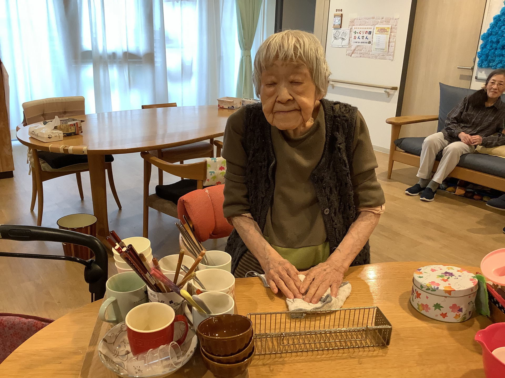 2024.10.20 活動報告 ☆WEST☆ 綺麗に拭き拭き Tweet シェアする 食器綺麗に拭き拭き♬ 今日はM様お願いします♬ 9人分の食器・・1枚1枚丁寧に拭いて下さってます(*^^*) お疲れさまでした(^O^)/ GH小日向 きむら 前の記事 2024.10.20 活動報告 ☆WEST☆ おしゃべりタイム♬ 次の記事 2024.10.20 活動報告 11月の壁飾りの作成 ♡EAST♡ 一覧へ戻る