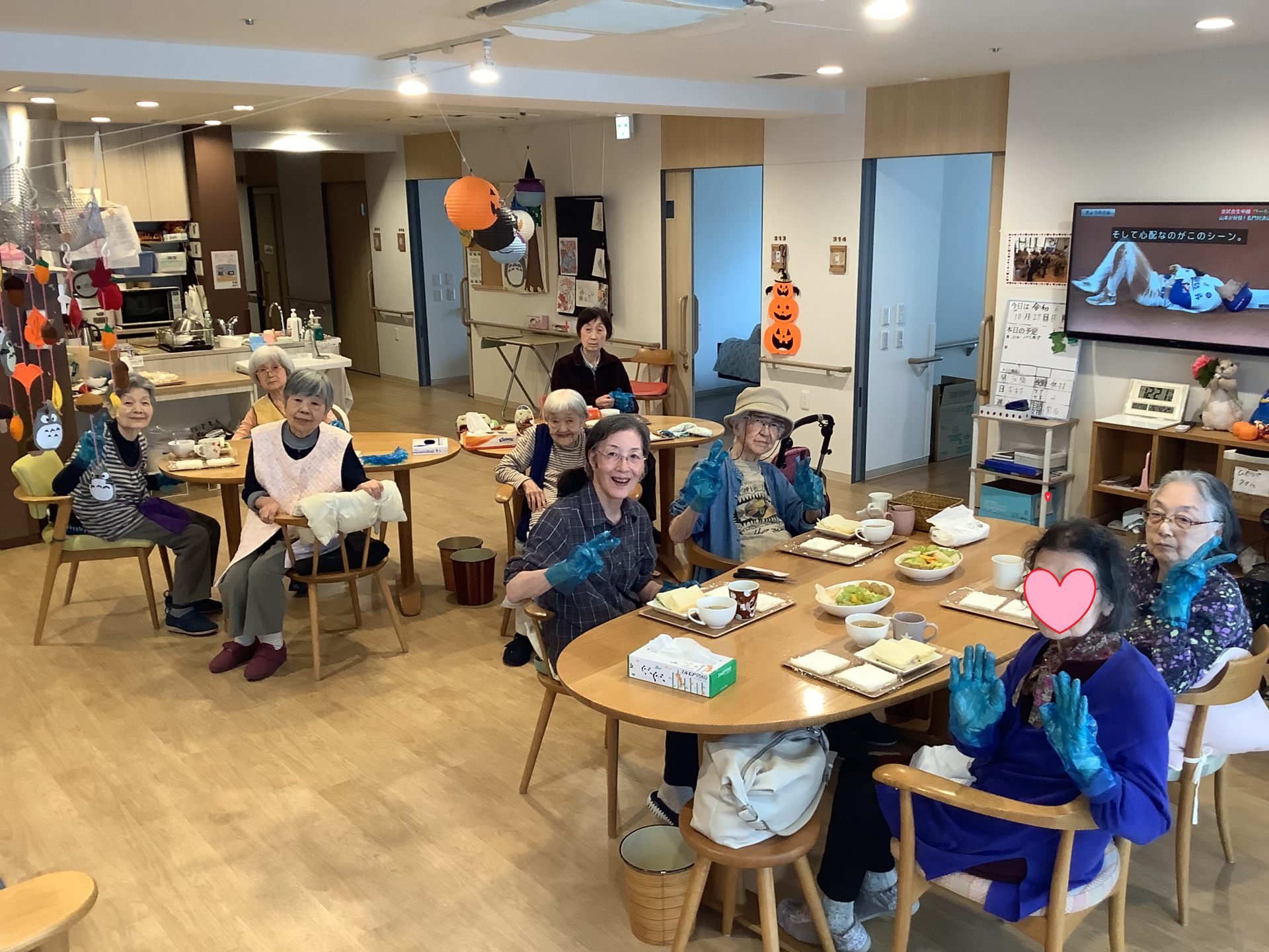 こちらのテーブルはでは玉子サンドを作ってます♬