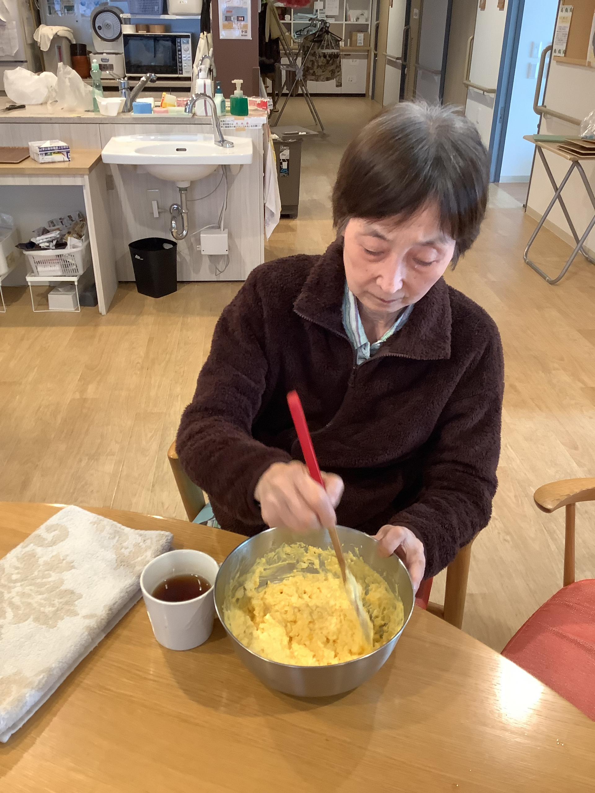 こちらのテーブルはでは玉子サンドを作ってます♬