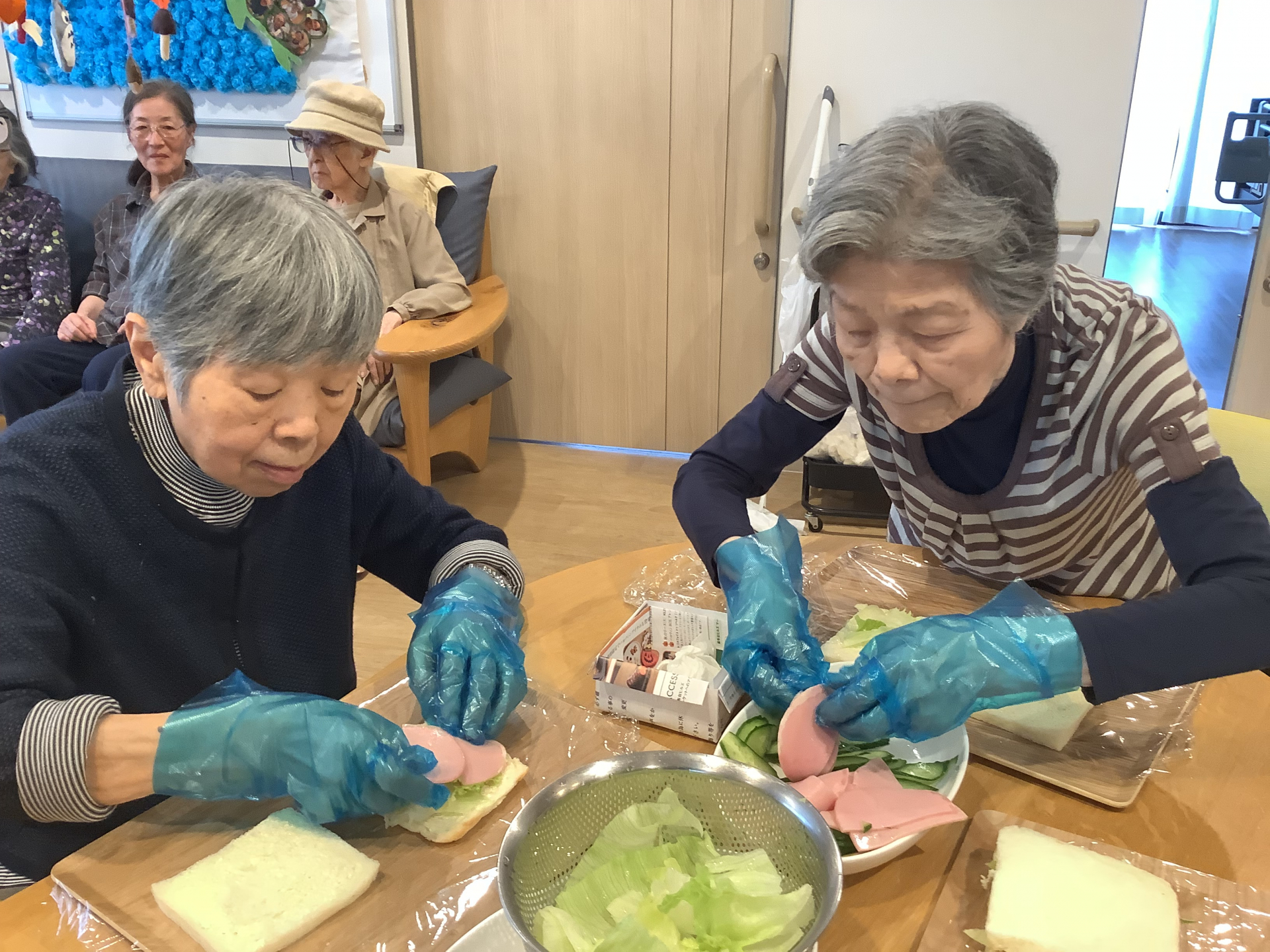 分担してサンドウィッチ作りに取り掛かってます(*^^*)