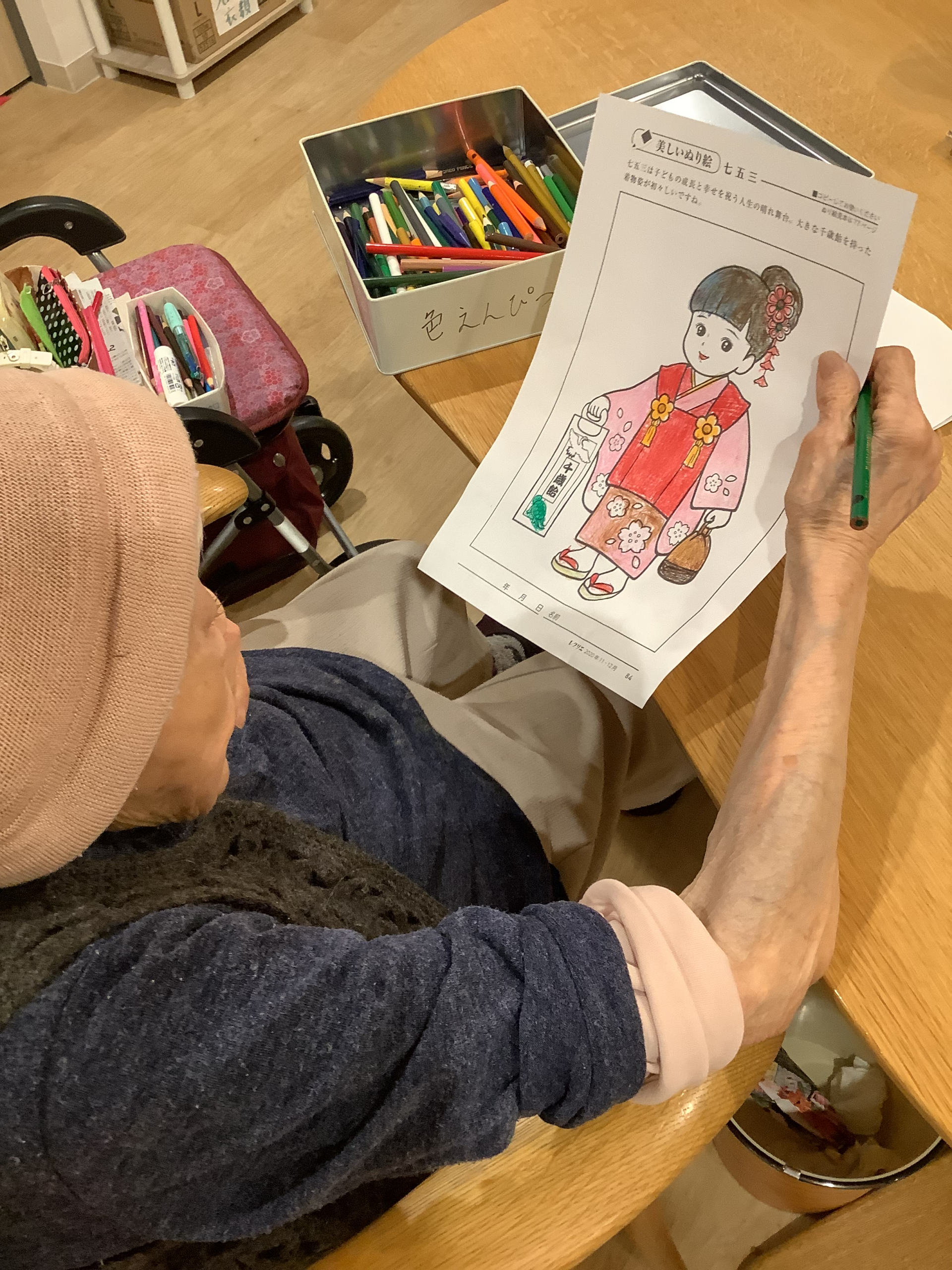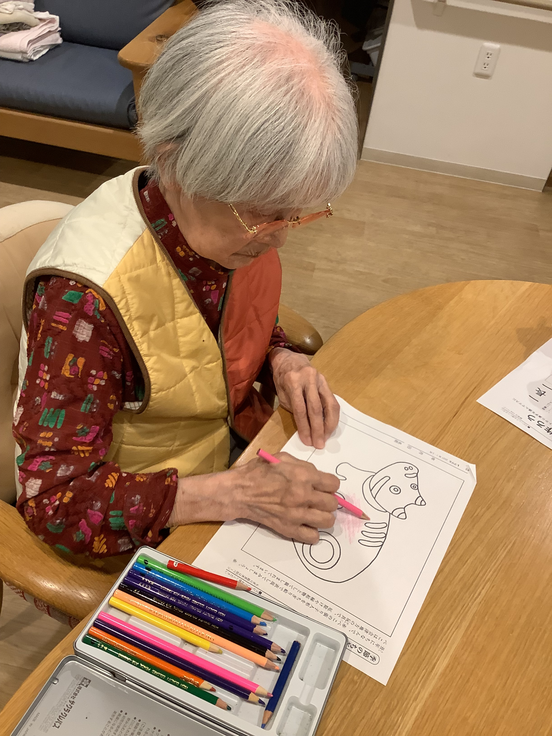 2024.12.26 活動報告 ☆WEST☆ 夕食前のひと時 Tweet シェアする 夕食前のご様子になります。 塗り絵を楽しまれる方・脳トレに挑戦されている方がいらっしゃいます。 N様は塗り絵を楽しまれています。 GH小日向 きむら 前の記事 2024.12.27 活動報告 本日のEAST 次の記事 2024.12.26 活動報告 本日のEAST 訪問美容 一覧へ戻る