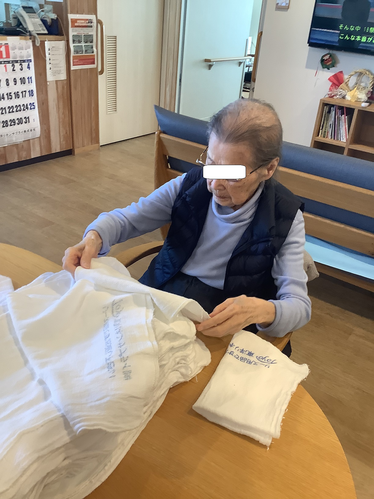 お茶の時間後少しタオルと洗濯物を畳んで頂きました!!
