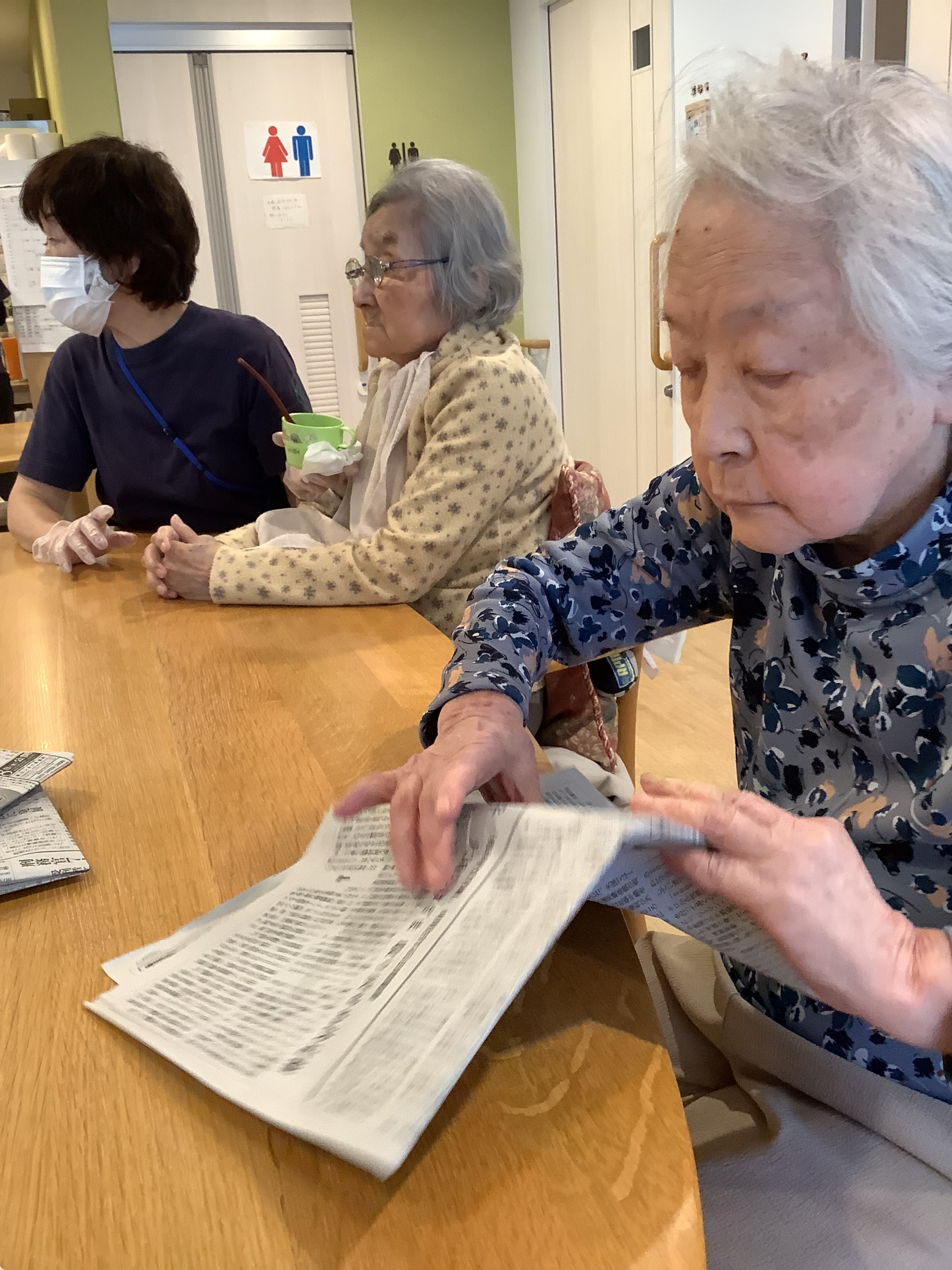 お散歩した後H様は新聞紙を折って頂きました!!