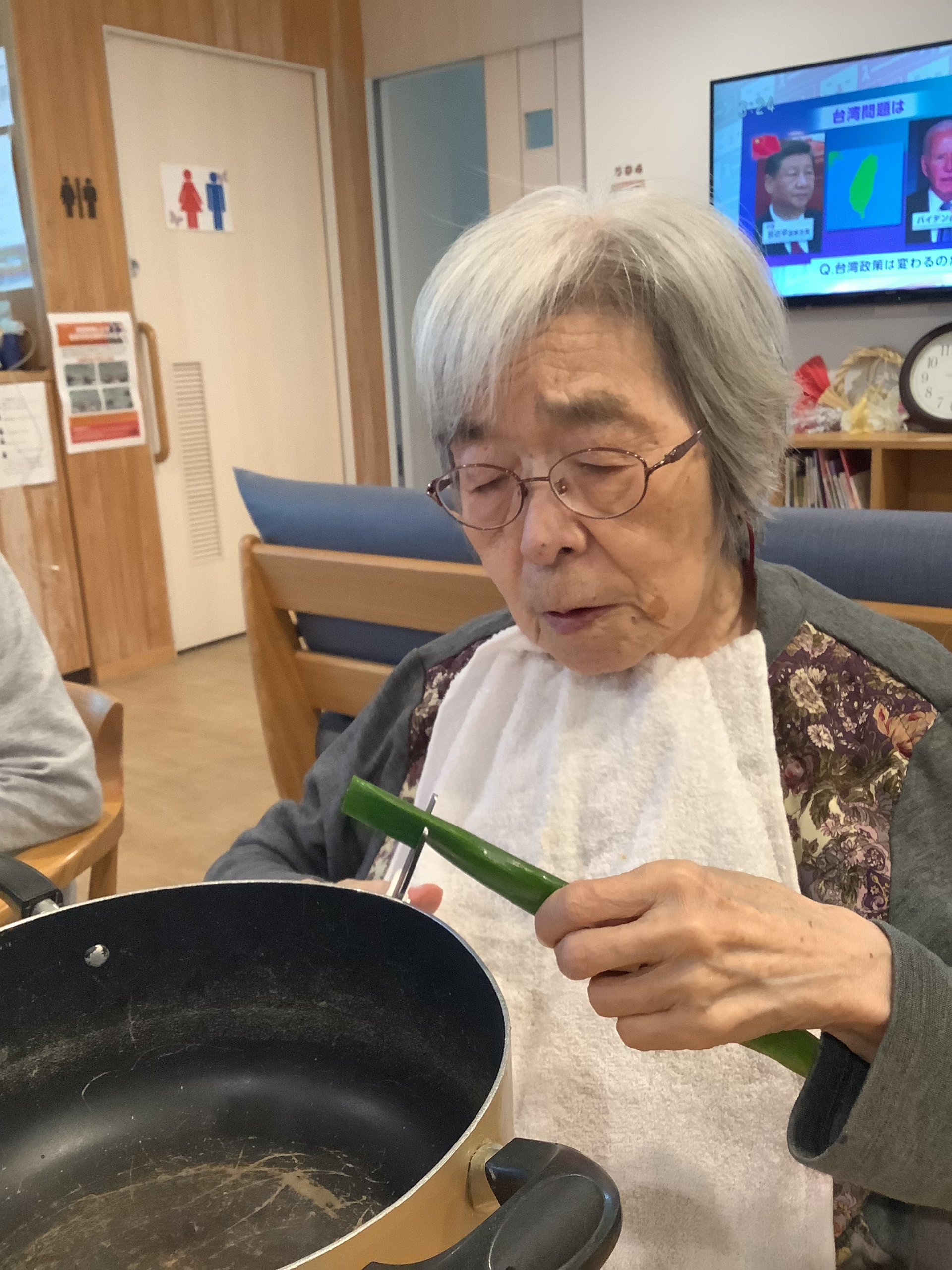 I様も夕方の味噌汁のネギを切って頂きました!(*^^*)