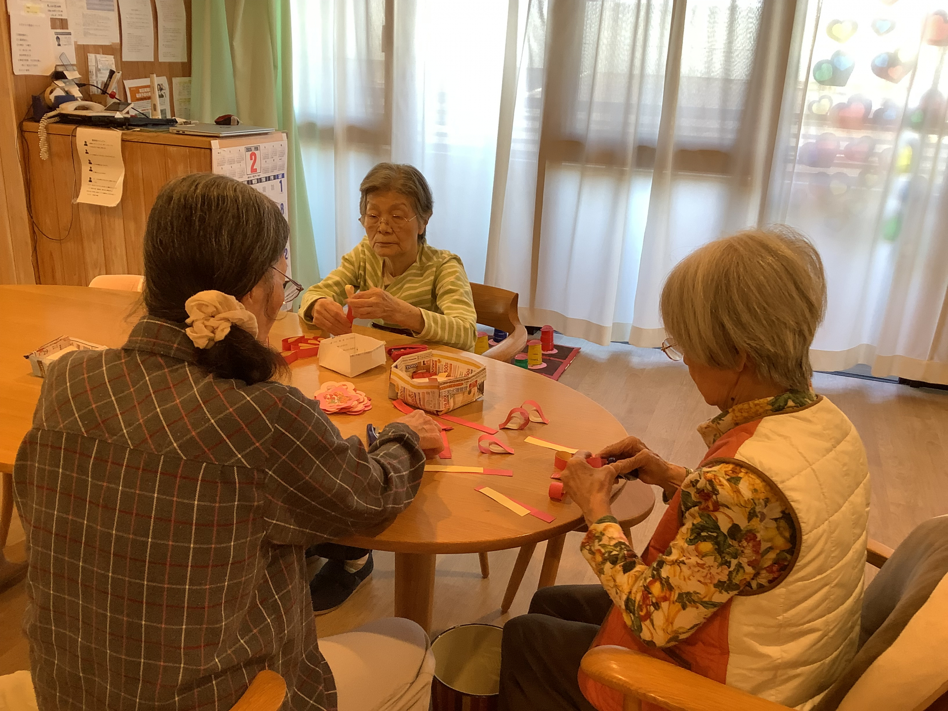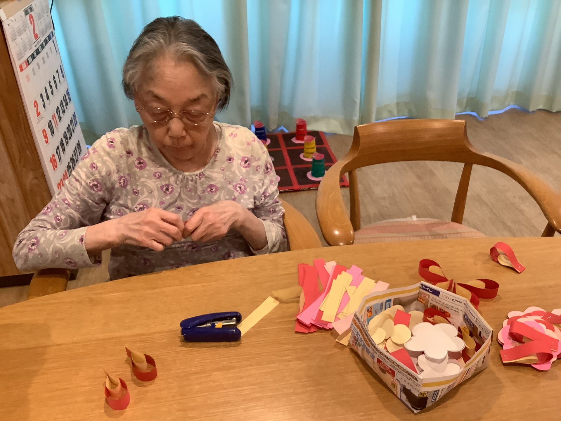 ホチキスを使い花びらを作製していきます。。