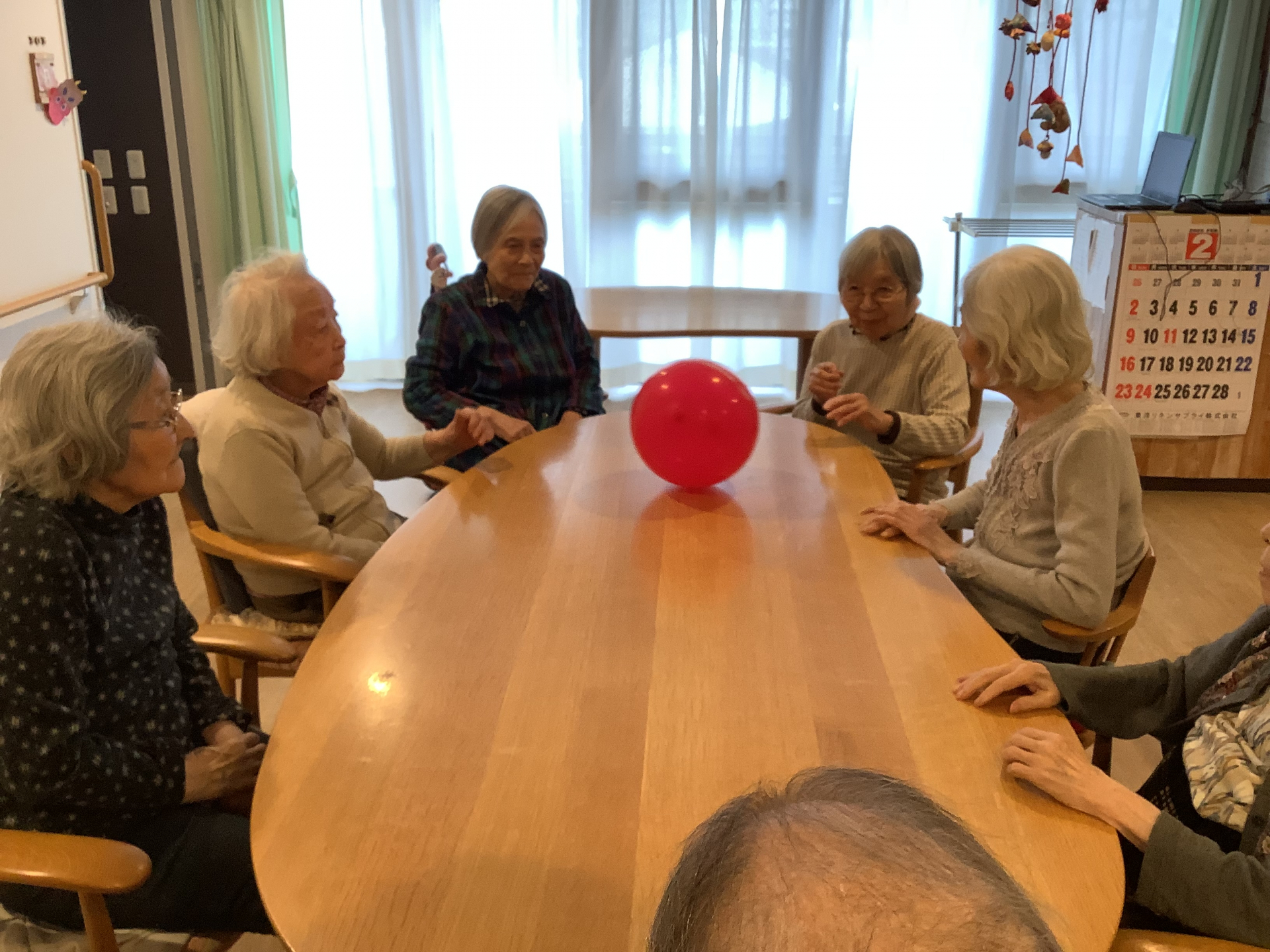 本日風船バレーをやりました,楽しくて運動にもなりま!